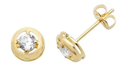 • Klassische 9 Karat (375) Gold Damen - Paar Ohrstecker mit Zirkonia