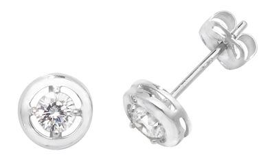• Klassische 9 Karat (375) Weißgold Damen - Paar Ohrstecker mit Zirkonia
