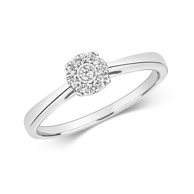 • Klassischer 9 Karat (375) Weißgold Diamantring Brillant-Schliff 0.10 Karat H - I1