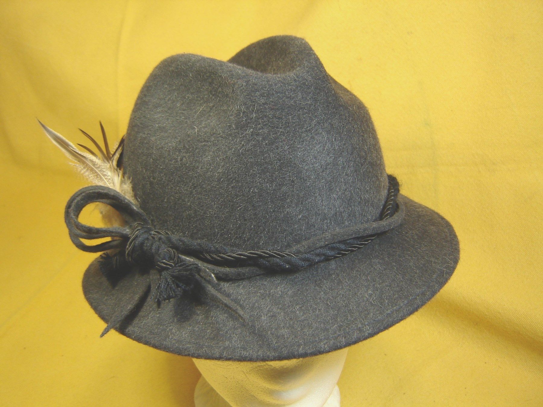 . klassischer Trachtenhut aus Wollfilz handgearbeitet klassisch sportliche Trachtenhut Form , in Farbe blau meliert als Garnitur Kordel blau und Filzstreifen und Feder in Größe 57 cm Kopfumfang . - Bitte sehen Sie sich hier alle meine anderen Artikel an . . Hut Hüte Huete Hat hats Hutreparatur hutwe