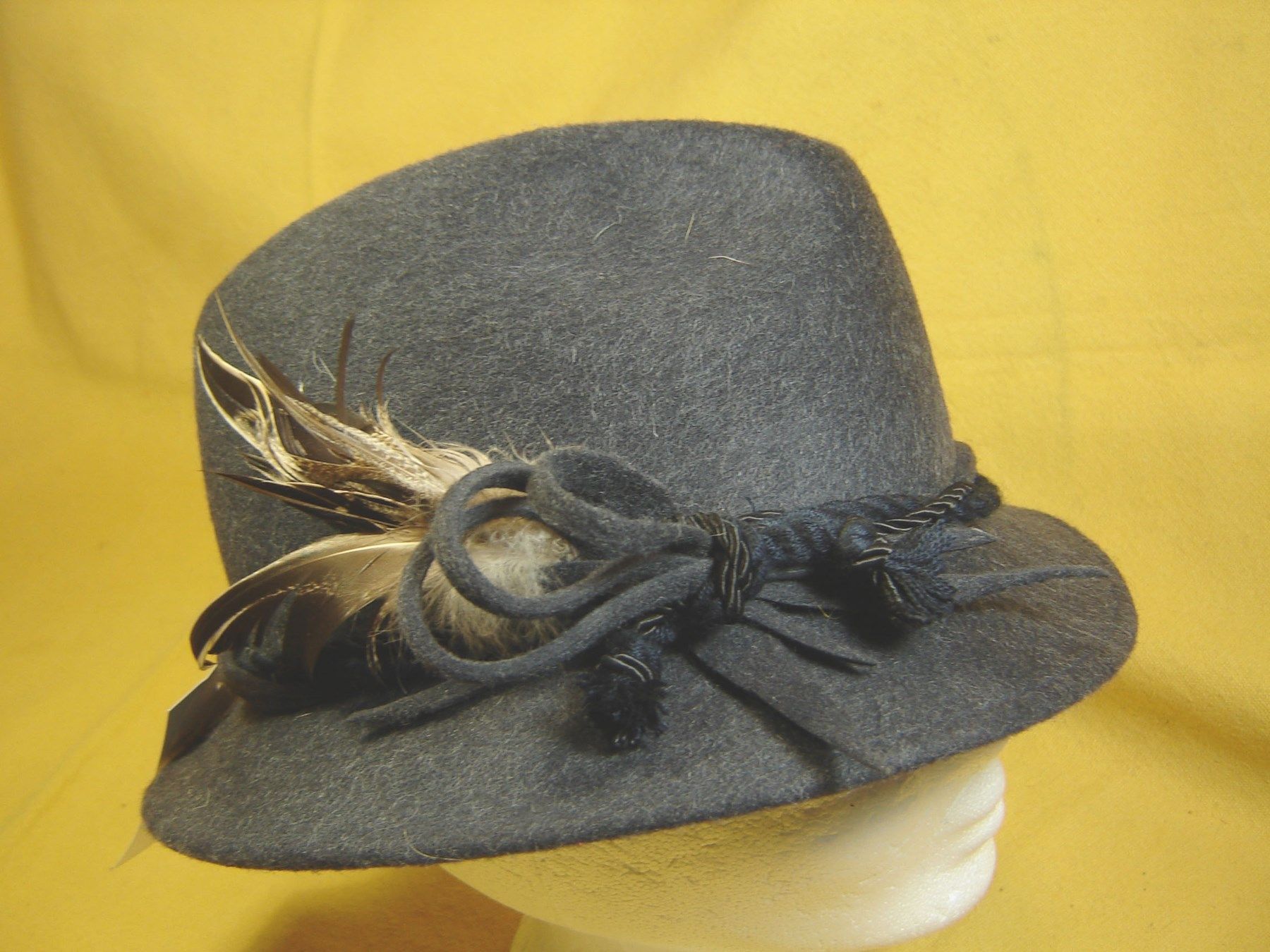 klassischer Damenhut Wollfilz blau meliert m Kordel und Feder Trachtenhut DH10