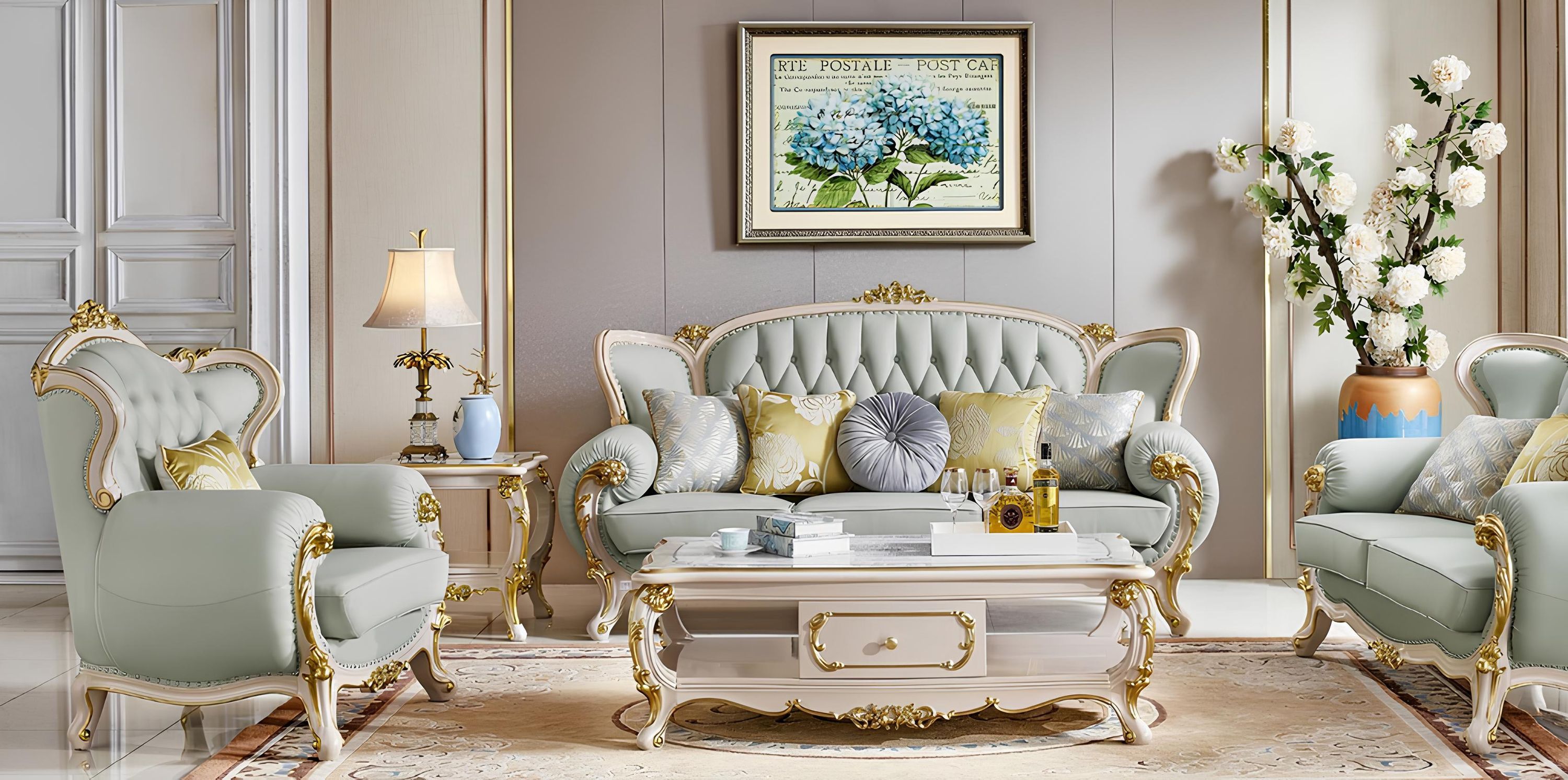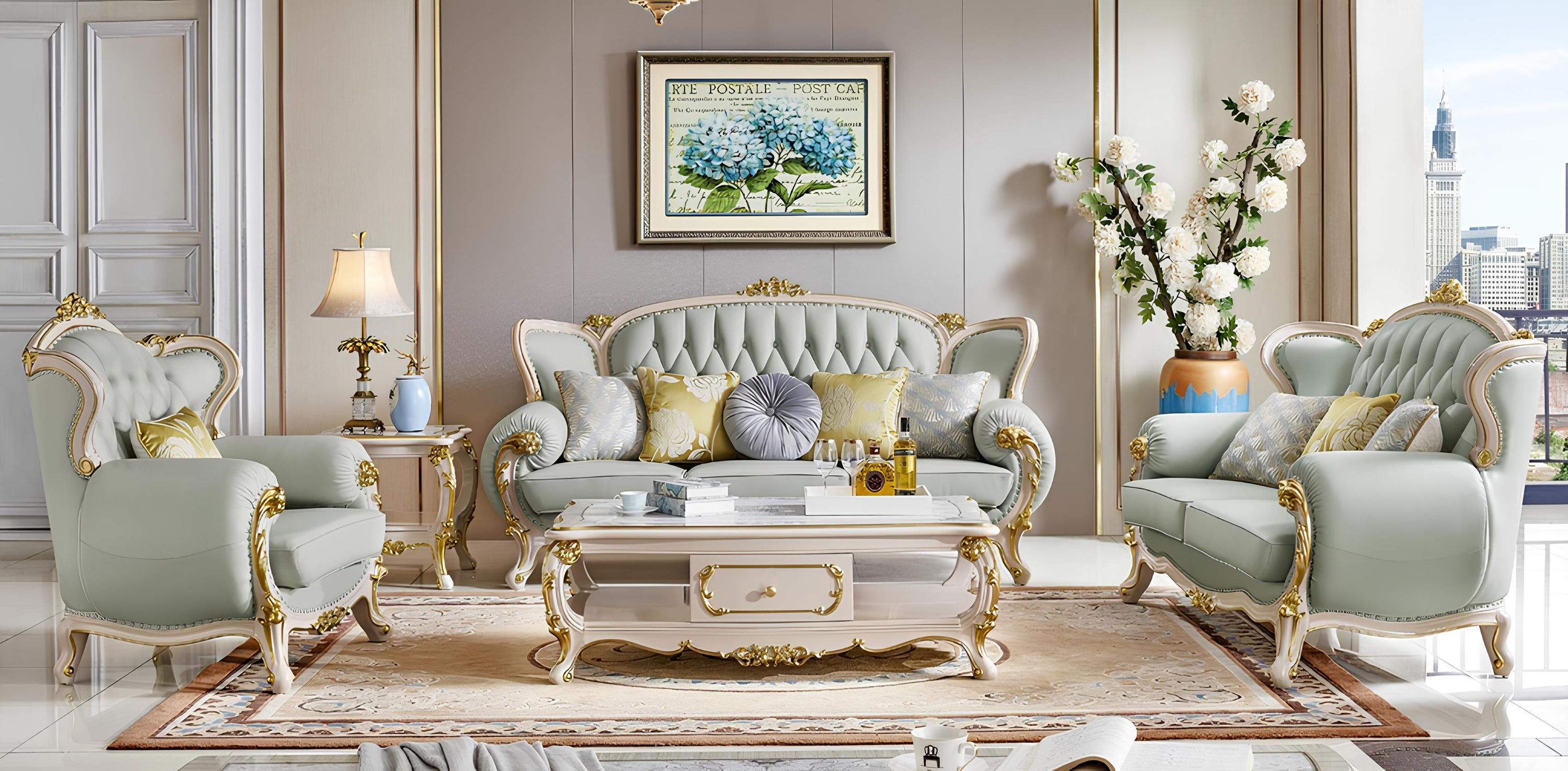 Klassische Sofagarnitur Sitzmöbel Dreisitzer Sitzbank Couchtisch Luxus