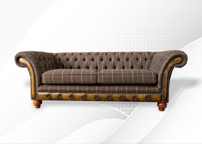 Chesterfield 3 Sitzer Braun Klassische Textil Dreisitzer Ledercouch Design Möbel