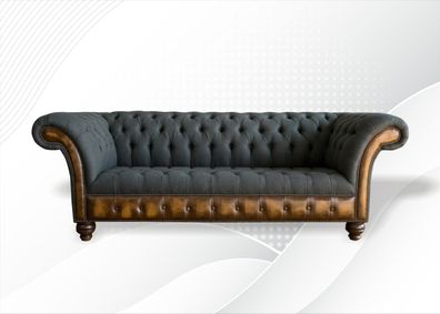 Chesterfield Couch Polster Klassischer Leder Textil 3 Sitzer Sofa Dreisitzer