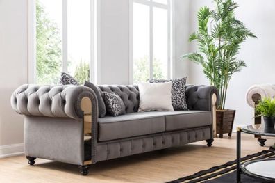 Luxus Wohnzimmer Sofa 3 Sitz Dreisitzer Grau Chesterfield Klassische Couchen