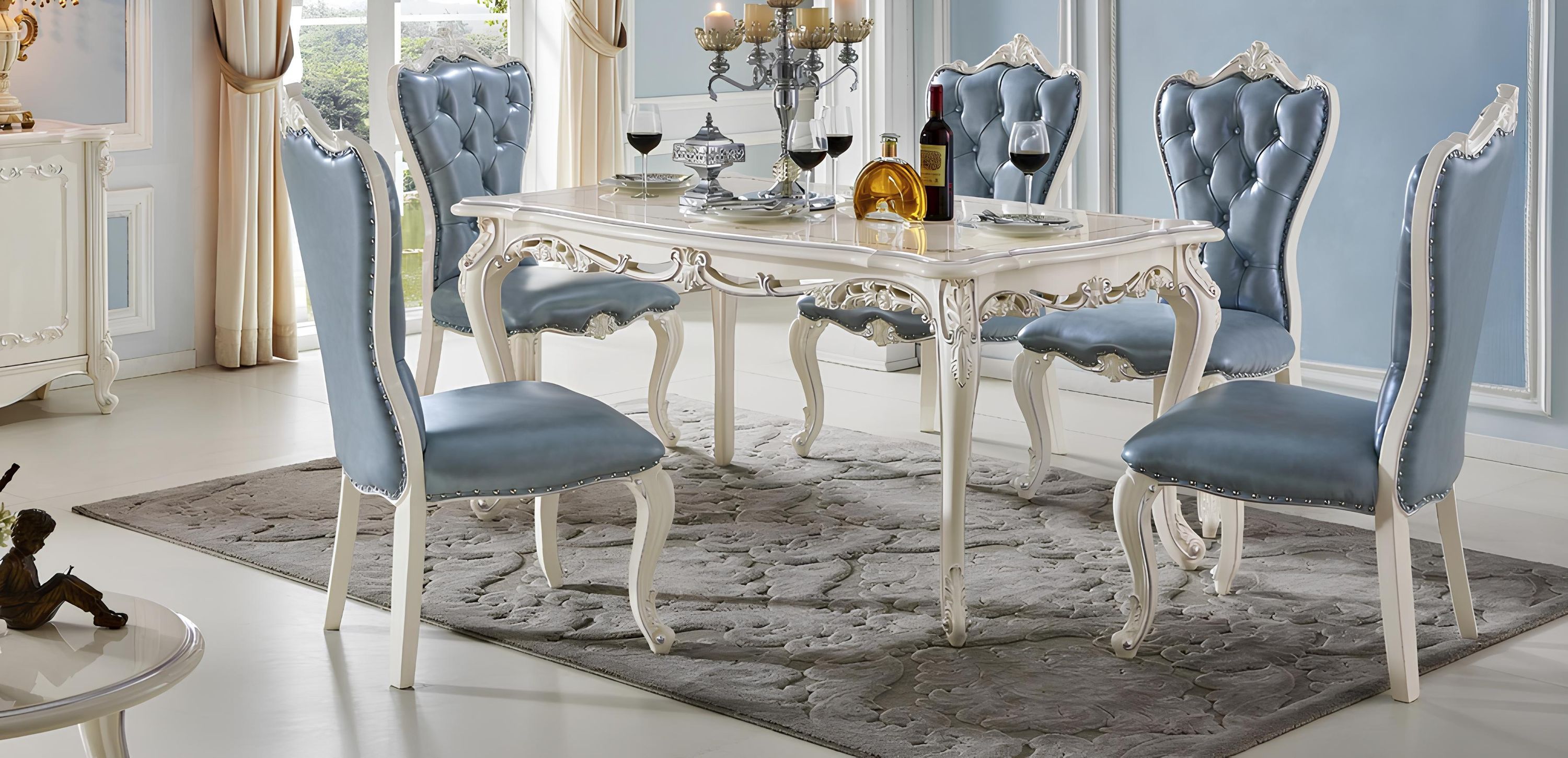Esszimmer Set Luxus Esstisch und 4 Stühle klassische Möbel 5 Stück neu