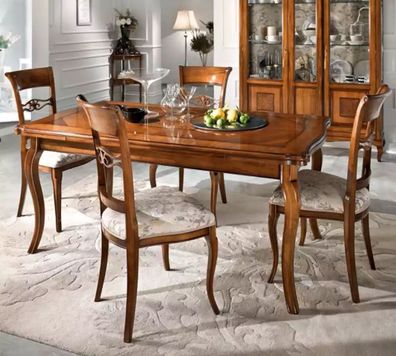Klassischer Tisch Esstisch Echtholz Esszimmer Garnitur 4x Stuhl Set Stühle 5tlg