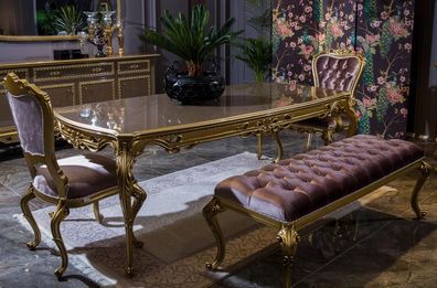 Klassischer Esstisch Tisch Holz Esszimmer Garnitur 4x Stuhl Set Stühle Barock