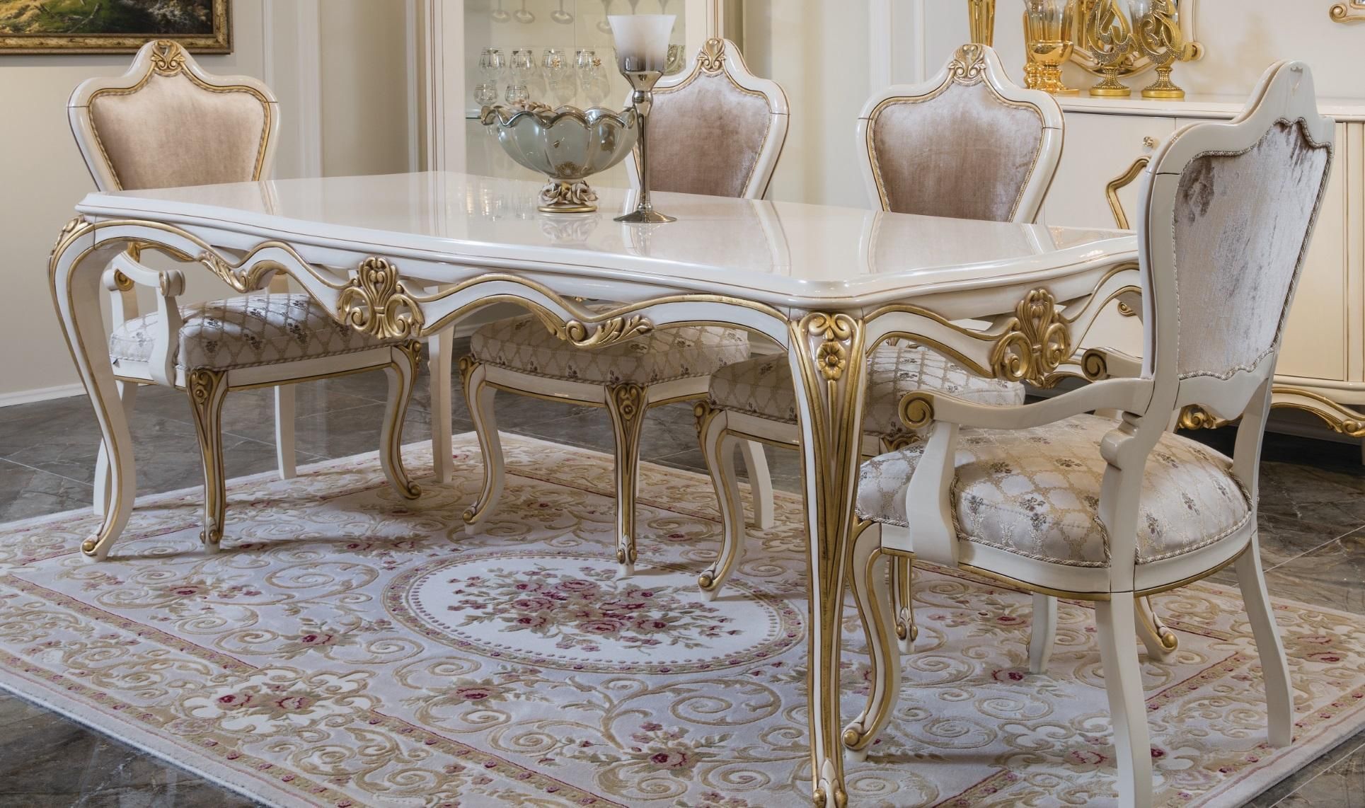 Klassisches Esszimmer Esstisch Vitrine 4x Stuhl Essgruppe Tisch Kommoden 7tlg