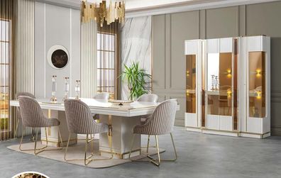 Perlweiß Esszimmer Set Esstisch 6? Stühle Vitrine 8tlg Luxus-Set