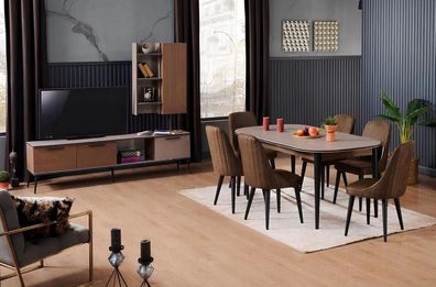 Essgruppe Esstisch Esszimmerset Stühle Vitrine RTV Garnitur Tisch Esszimmer Set
