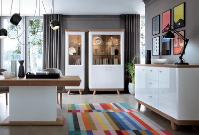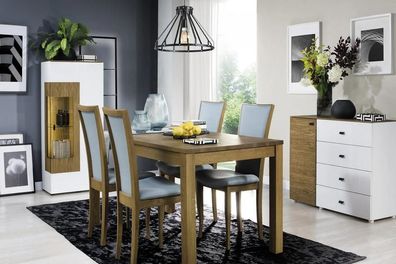 Esszimmer Set mit Esstisch, 4x Stühlen und Vitrine im modernen Design