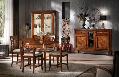 Italienisches Esszimmer Möbel Set Esszimmer Gruppe Vitrine Tisch 6x Stühle 8tlg
