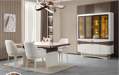 Esszimmer Set Sideboard Komplett 2x Vitrine Modern Holzmöbel Luxuriöses