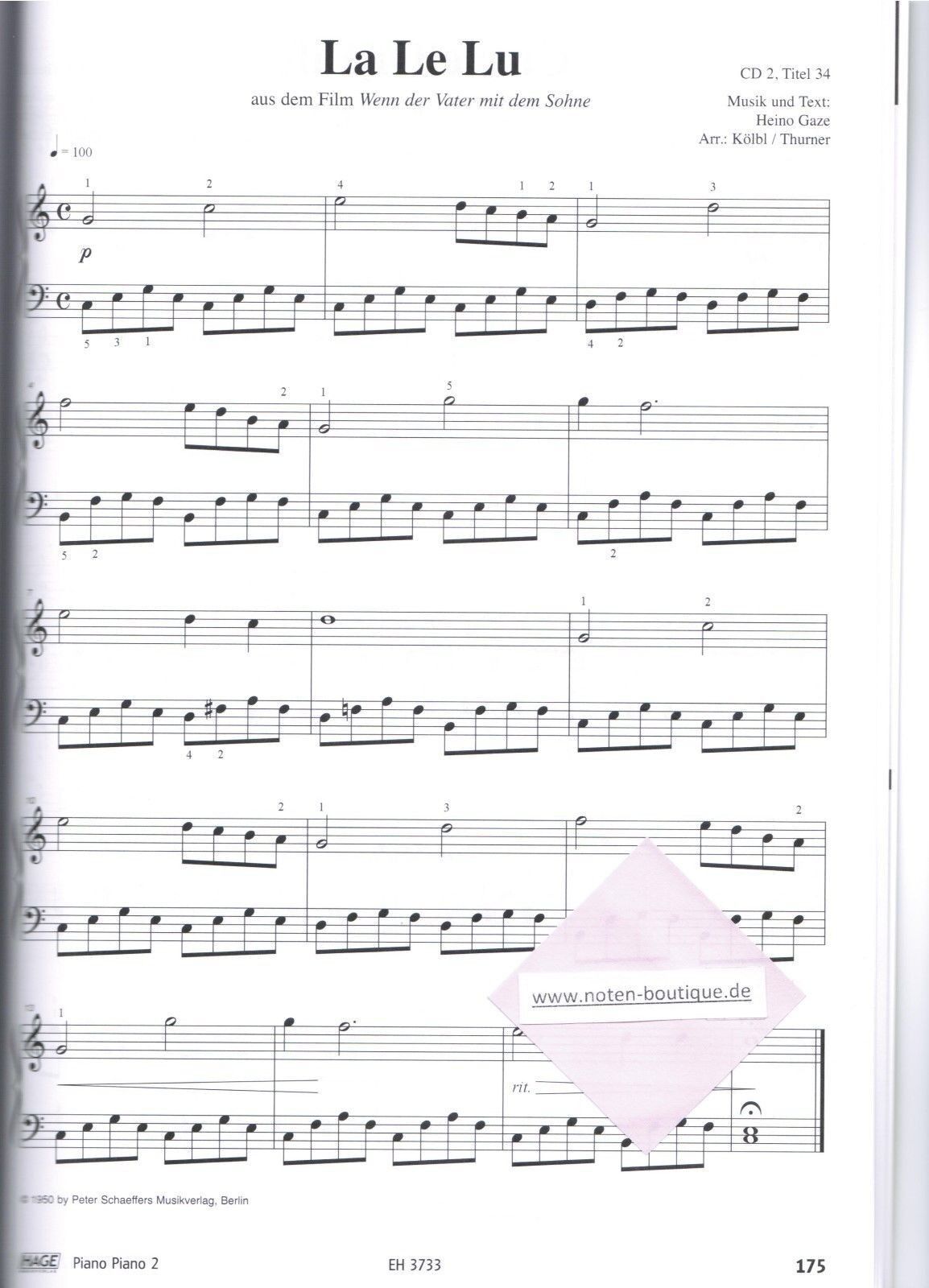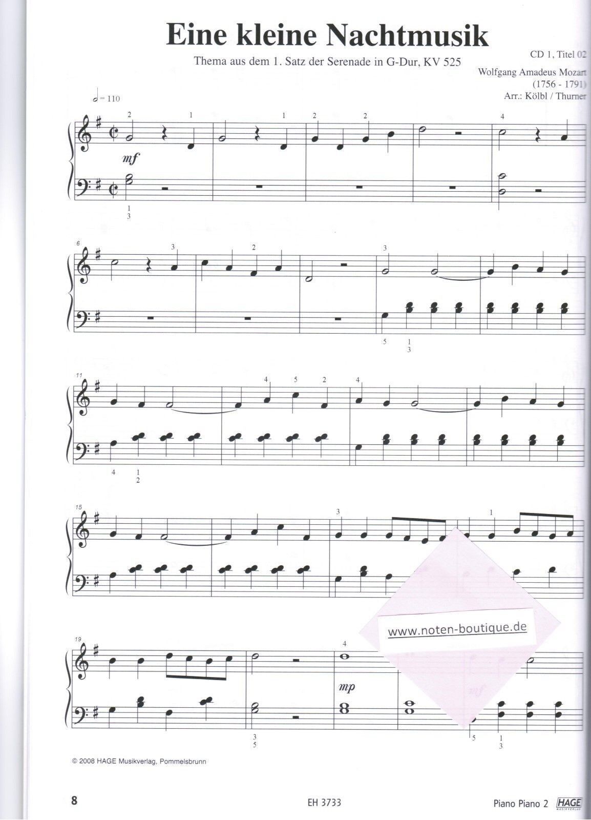Klavier Noten : PIANO PIANO Band 2 mit 2 CD's Ausgabe : LEICHT (Hage EH 3733)