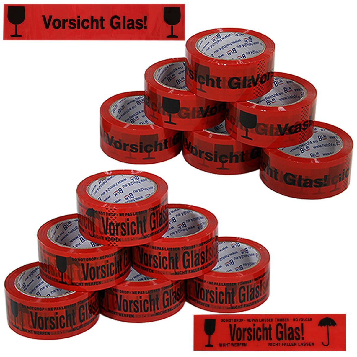 Klebeband Vorsicht Glas 66m x 48mm Aufkleber zerbrechlich Paketband 36x A1 A2