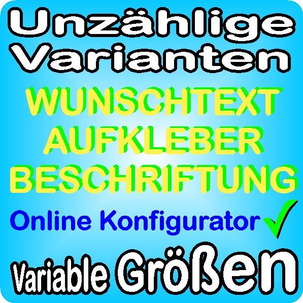 Individuelle Auswahl aus unzähligen Varianten im online Konfigurator - WUNSCHTEXT - MOTIV - AUFKLEBER HIER SELBST GESTALTEN Unzählige Auswahl an Varianten mit Vorschaufunktion! Wir sind Ihre Quelle für günstige Aufkleber und Beschriftungen nach Wunsch und Maß! Dieses Angebot gilt nur in Verbindung m