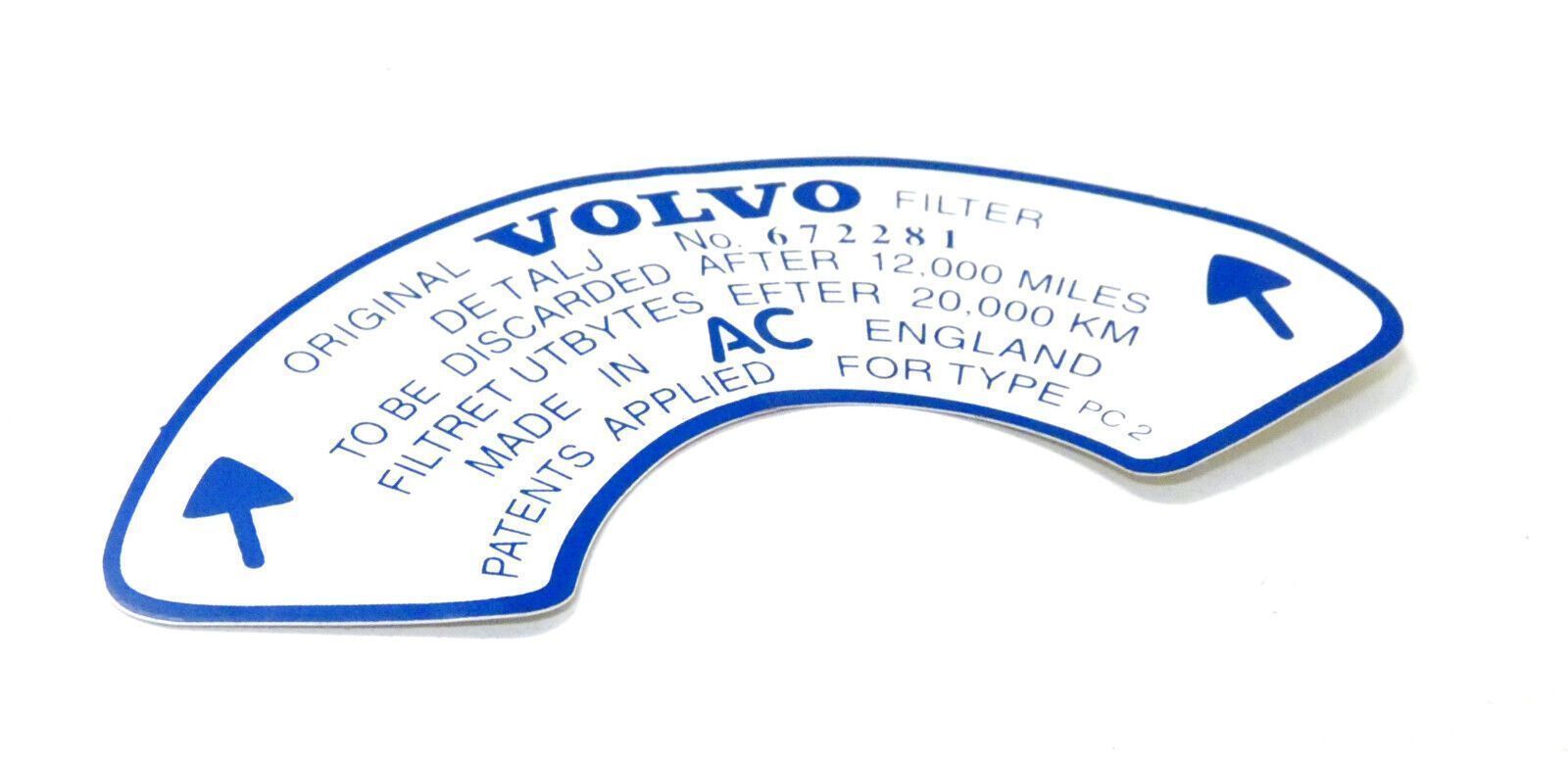 Klebeschild Austausch Luftfilter SCHILD Aufkleber FÜR VOLVO 672281