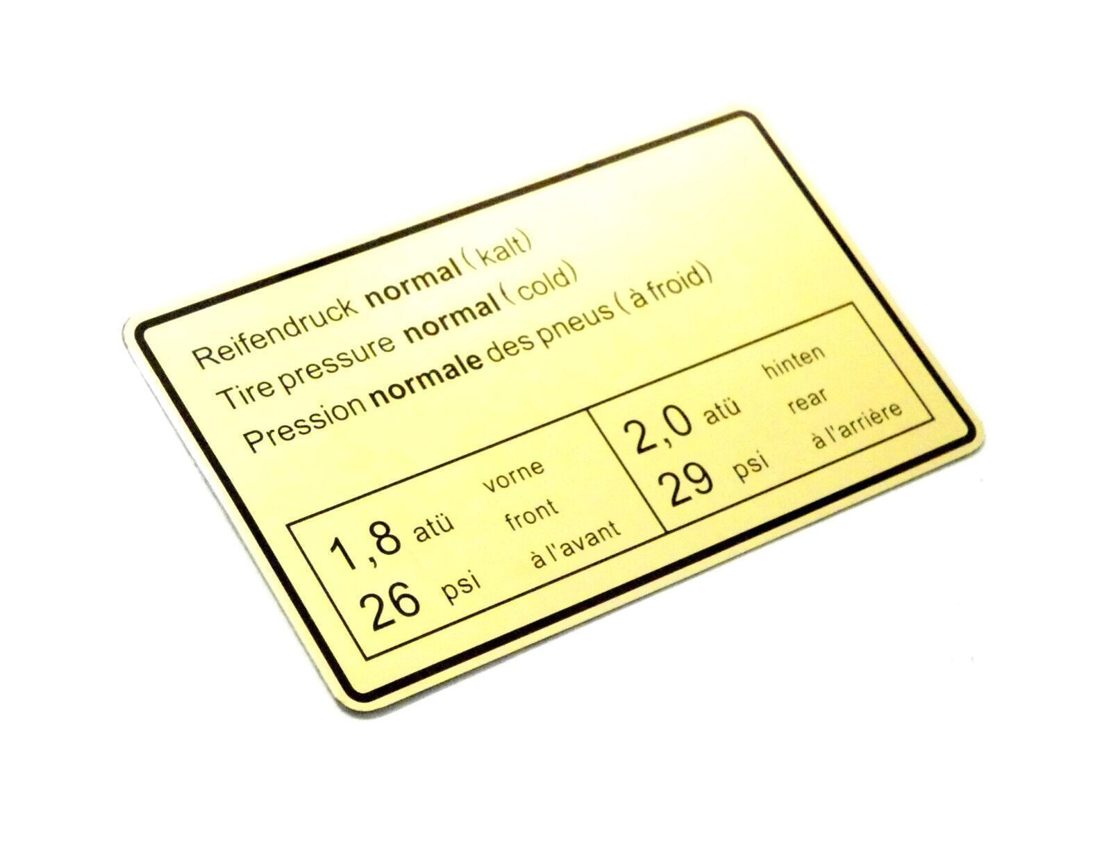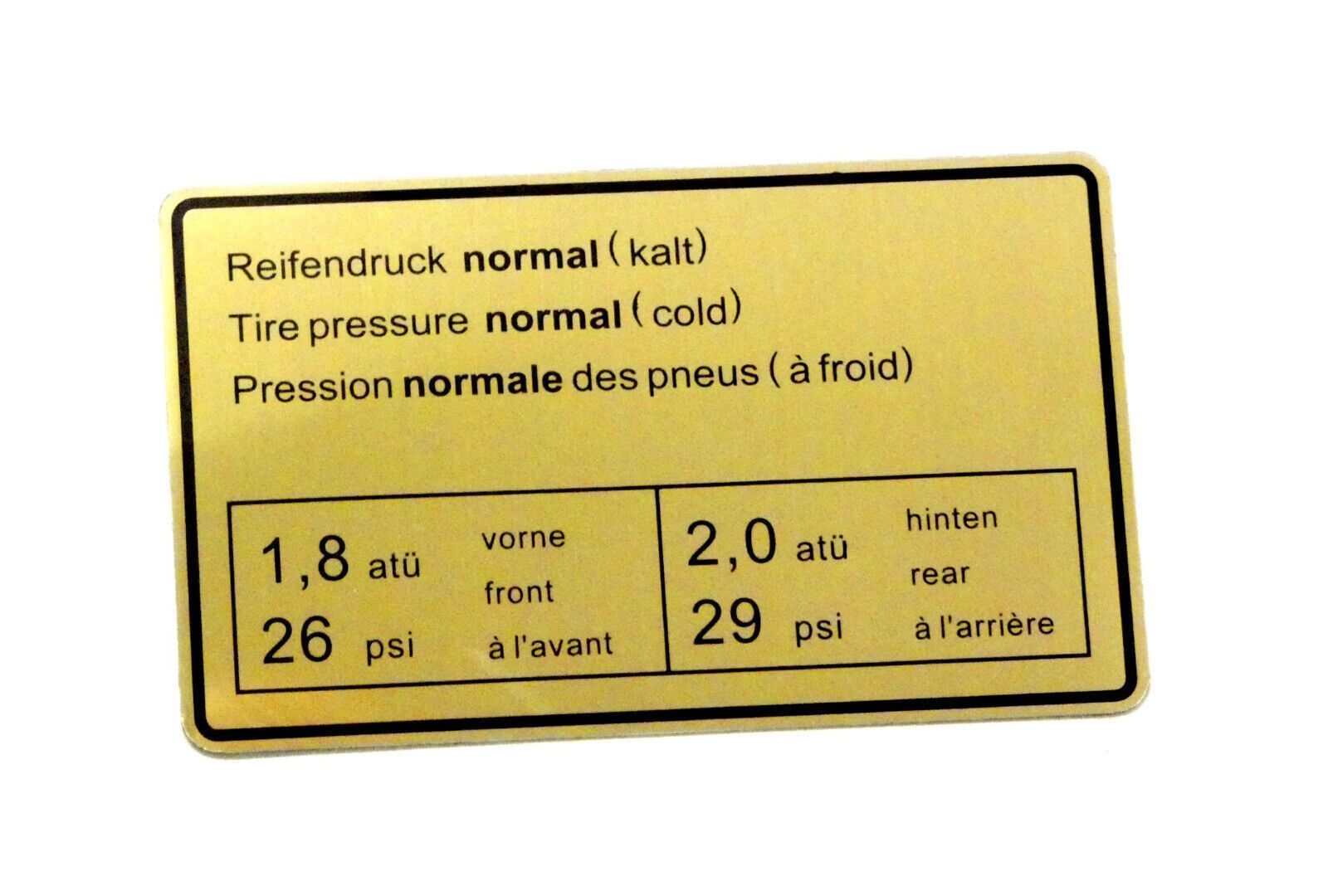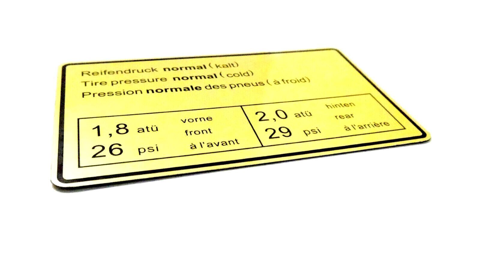 Klebeschild SCHILD Reifendruck Aufkleber FÜR Porsche 911 90100650500