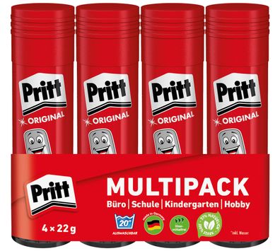• Pritt Klebestift Klebstoff ohne Lösungsmittel Wasserlöslich 4 x 22 g 4er Pack