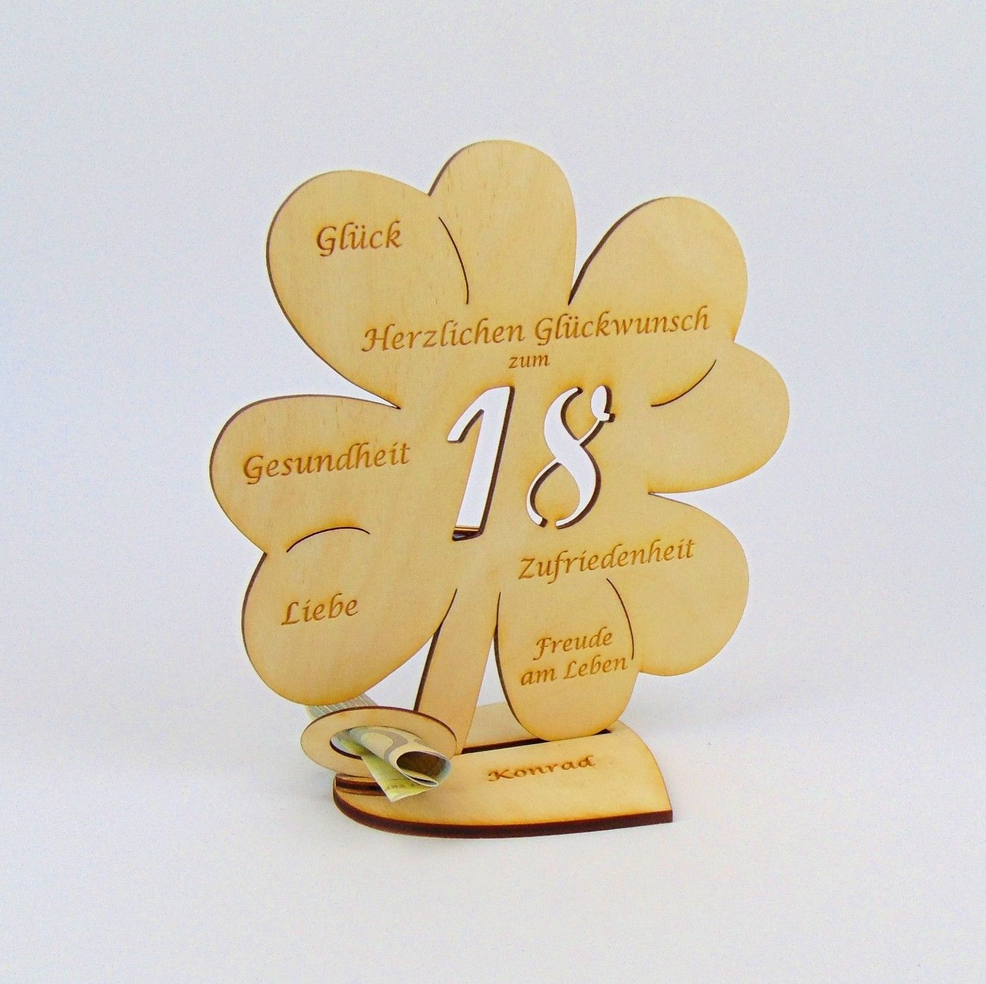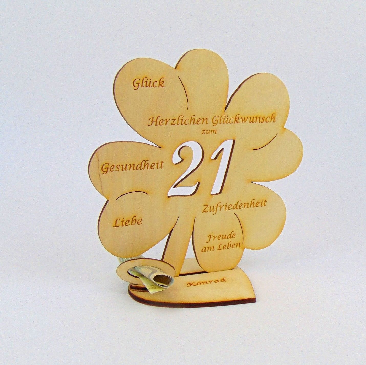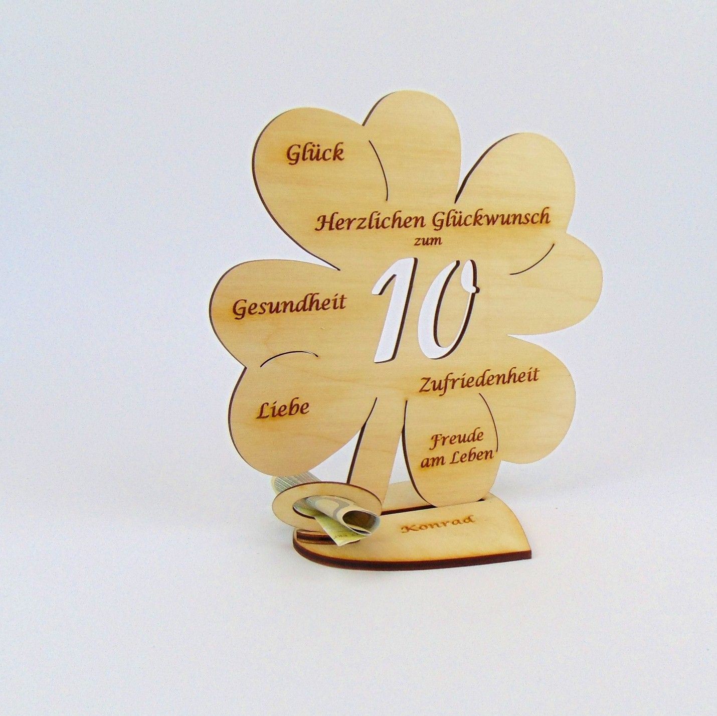 Kleeblatt 16 cm Herzplatte 10 18 21 20 25Geburtstag Geldgeschenk Personalisiert