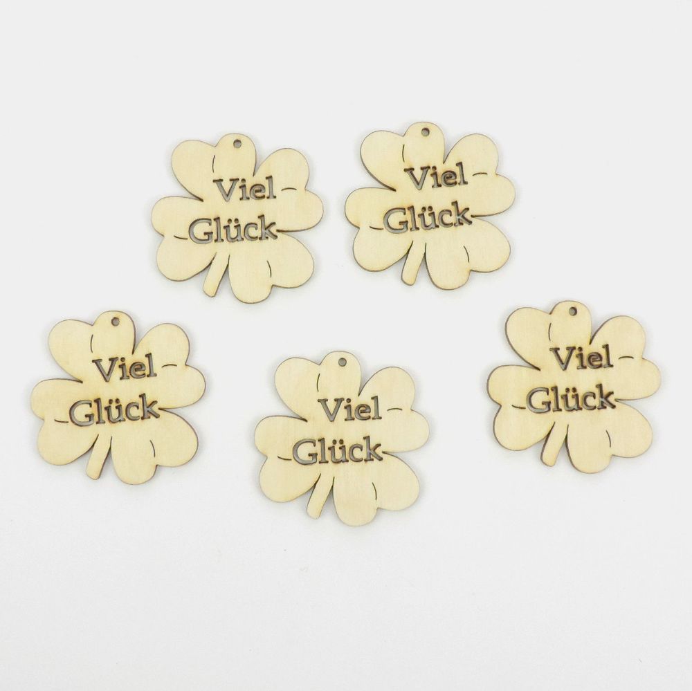 Kleeblatt Viel Glück 5 Stück 5 cm, aus Holz Geschenkanhänger Geburtstag Giveaway