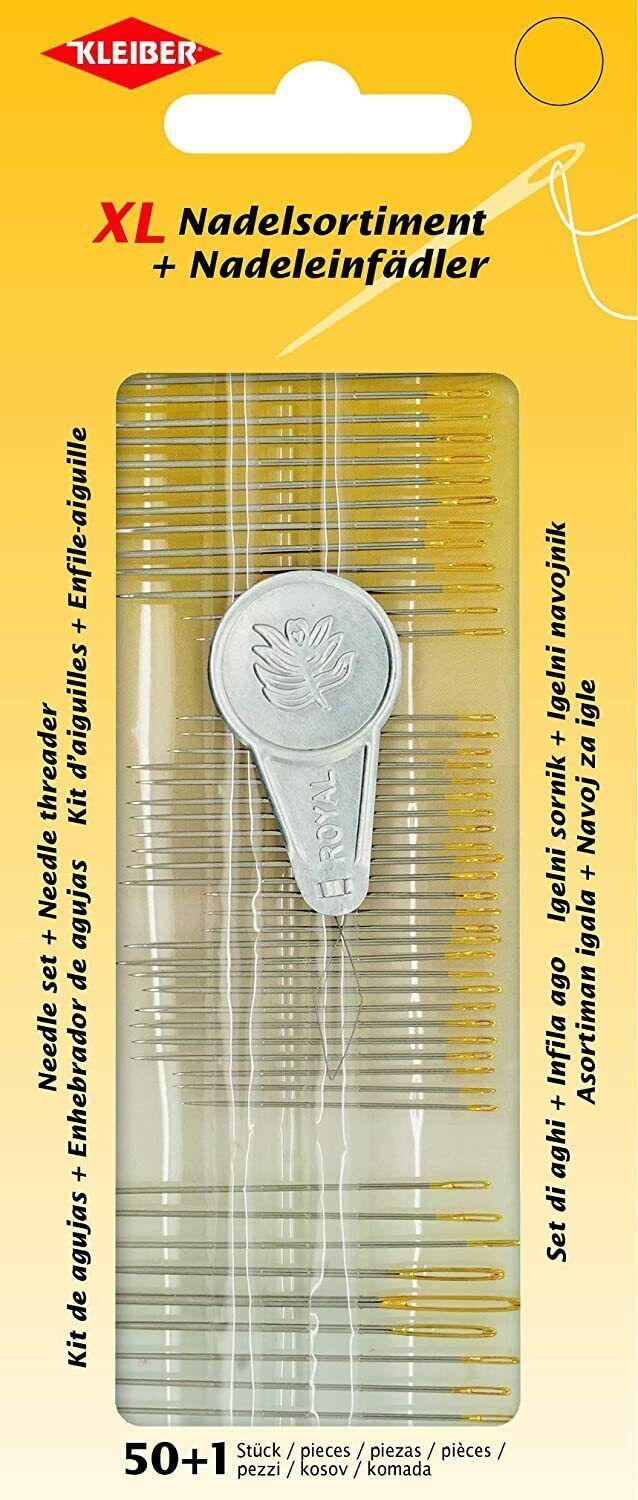 Kleiber 69925 XL Nadelsortiment inkl. Einfädler, mit Goldöhr, 51 Teile