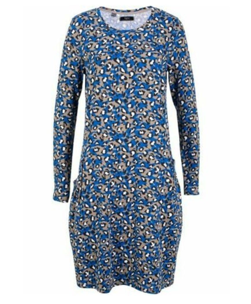 Kleid Shirtkleid Taupe / blau Leo berduckt Gr. 44/46 bpc D7°8234. Neu mit Etikett.