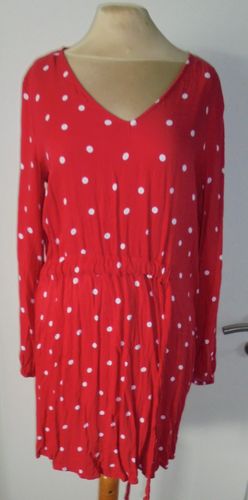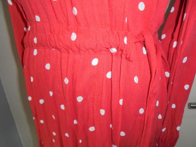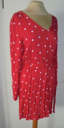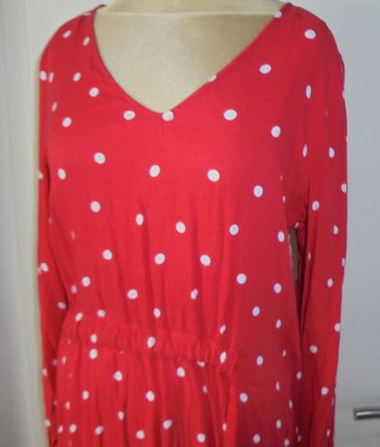 getragen Gr.38 hellrot farbig weiß gepunktet Kordeldurchzug in der Talle Armenden mit Gummizugbund 100 % Viskose siehe Bild Länge ab Schulter: 86 cm Brustweite einfach gemessen von Achsel zu Achsel: 48 cm Armlänge ab Schulter: 57 cm Zustand gut erhalten Versand 2,80 € Der Verkauf folgt unter Ausschl