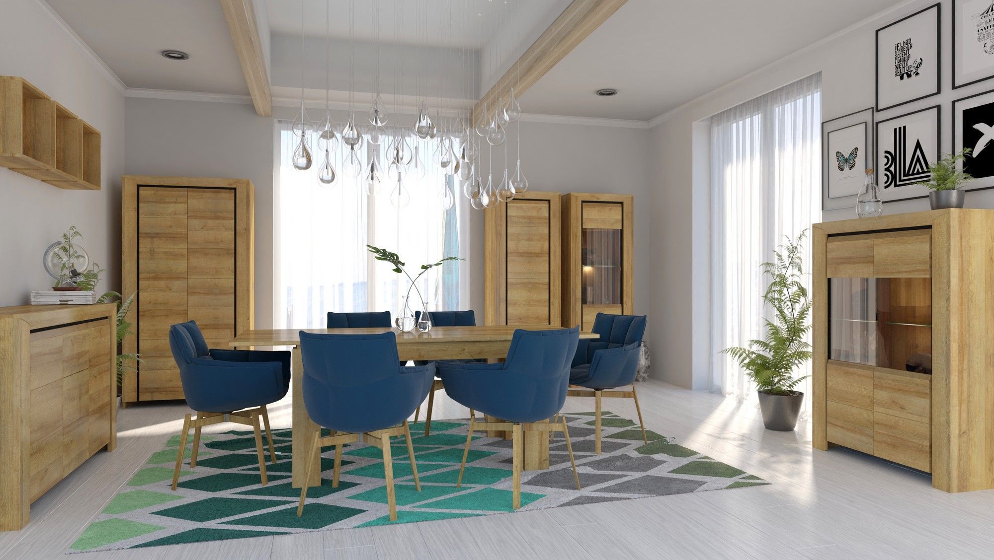 • Sideboard 152 cm Sirocco SIK-1 Kommode mit 2 Türen 3 Schubladen Riviera Eiche Dekor
