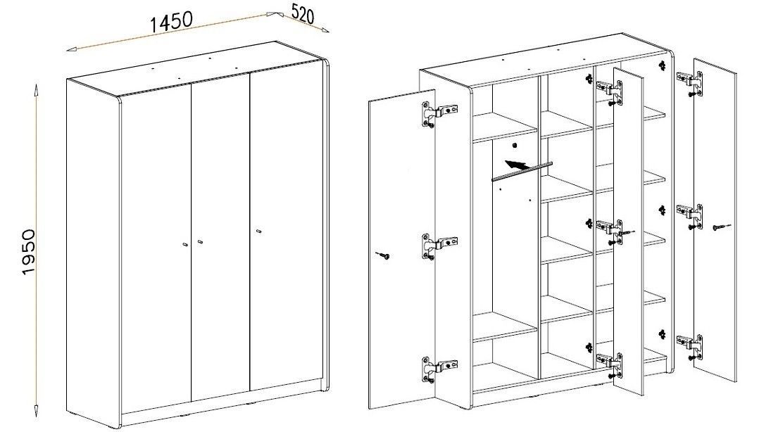 Kleiderschrank 3-türig | Moderner Schrank mit Einlegeböden & Kleiderstange