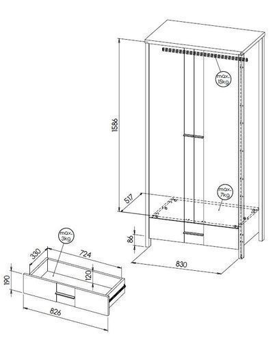 Kleiderschrank 90 cm Laura 1 Schrank Massivholz Kiefer Anthrazit 2 Türen 1 Schublade