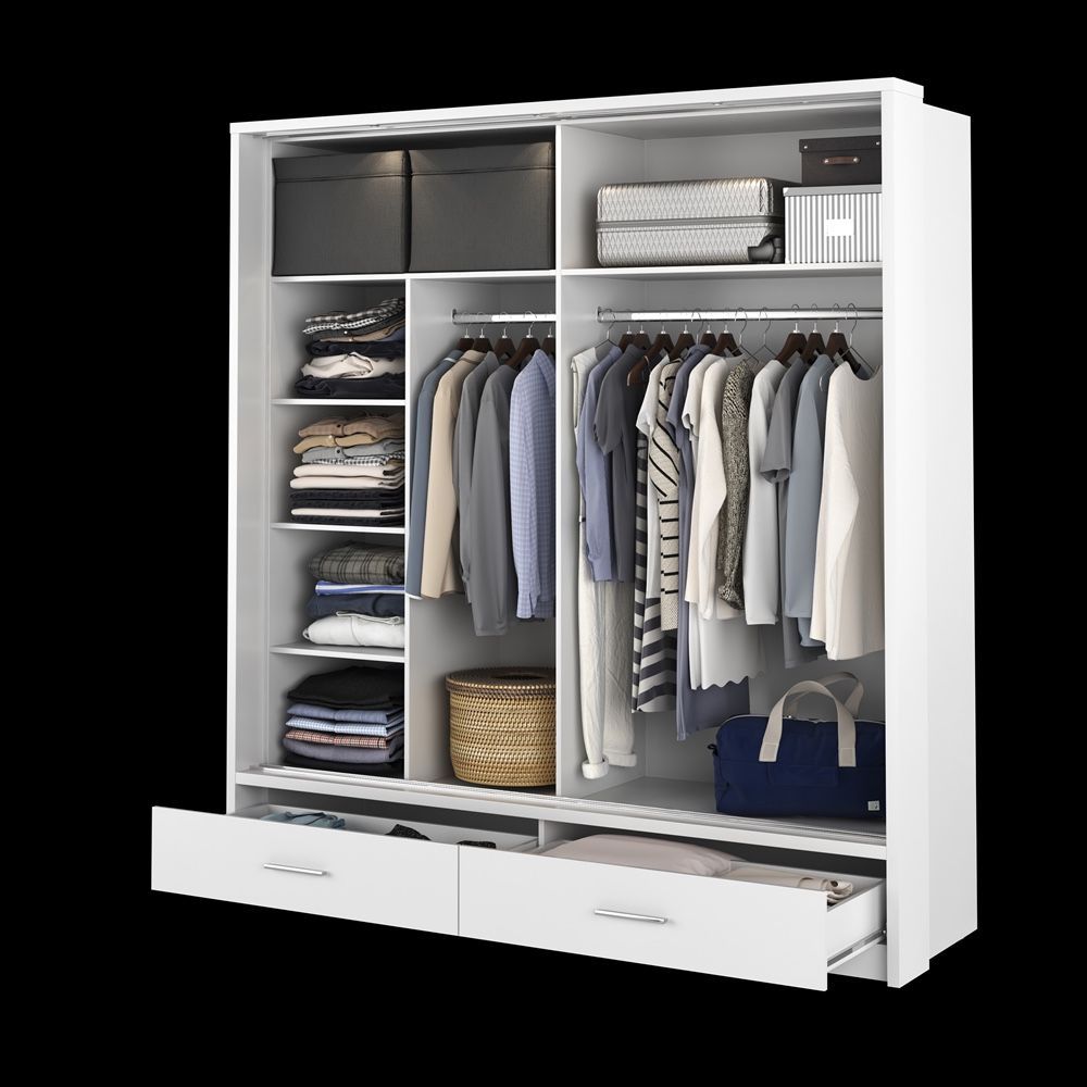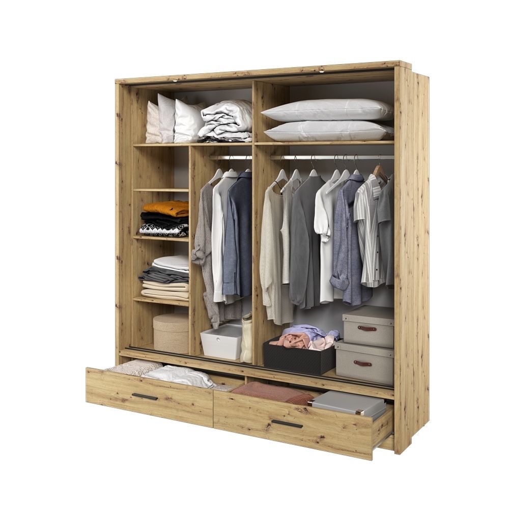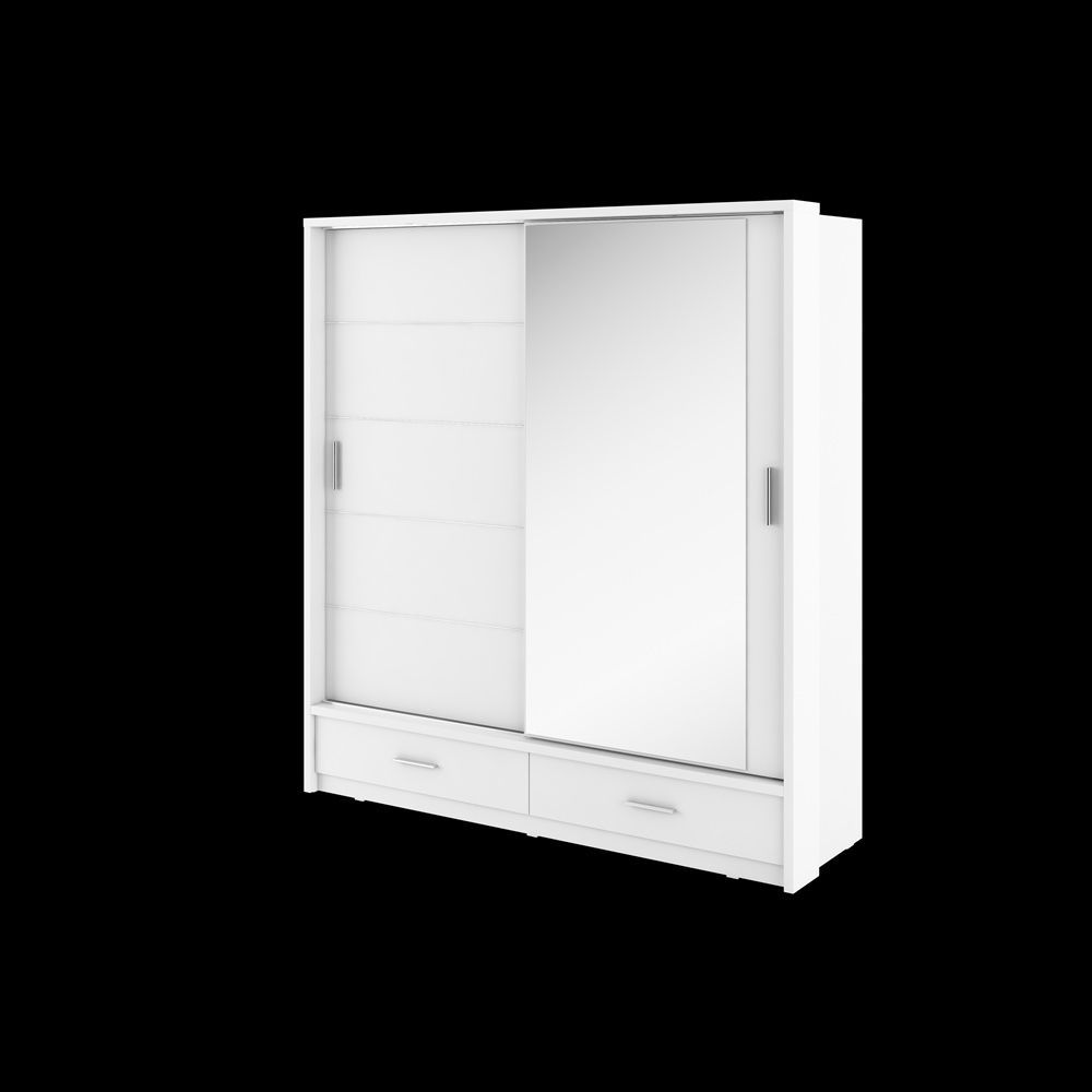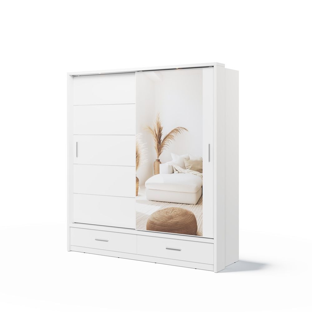 Kleiderschrank A-05, Schwebetürenschrank mit Spiegel, Schubladen , LED. Breite 200cm