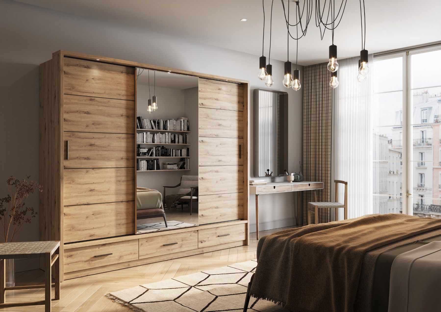 Kleiderschrank ARTI Kleiderschrank Schwebetürenschrank Schrank Spiegel Schubladen