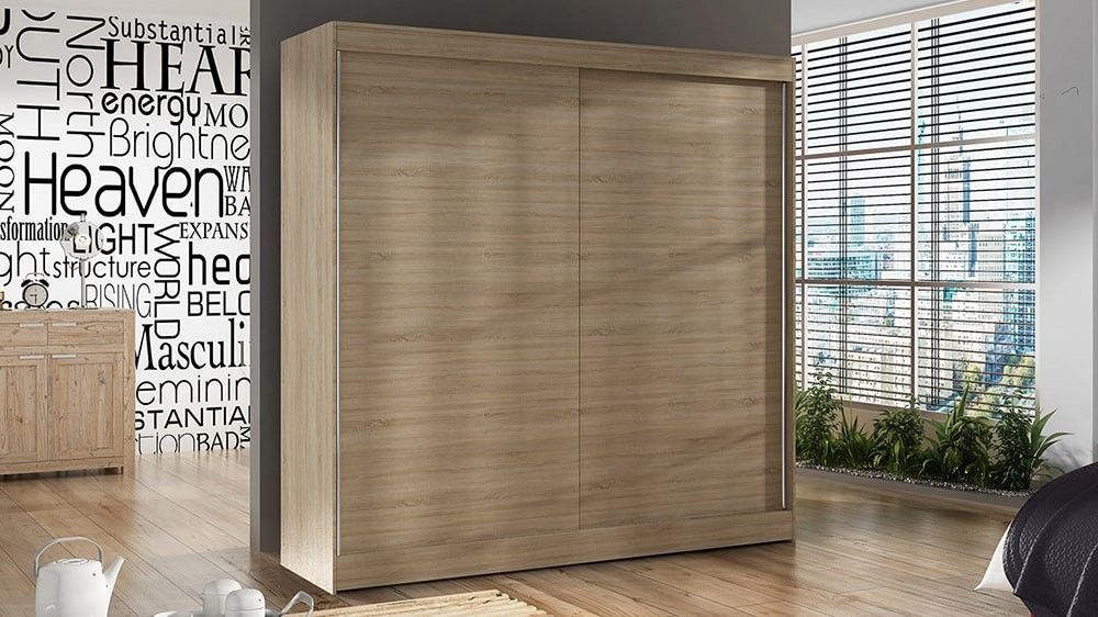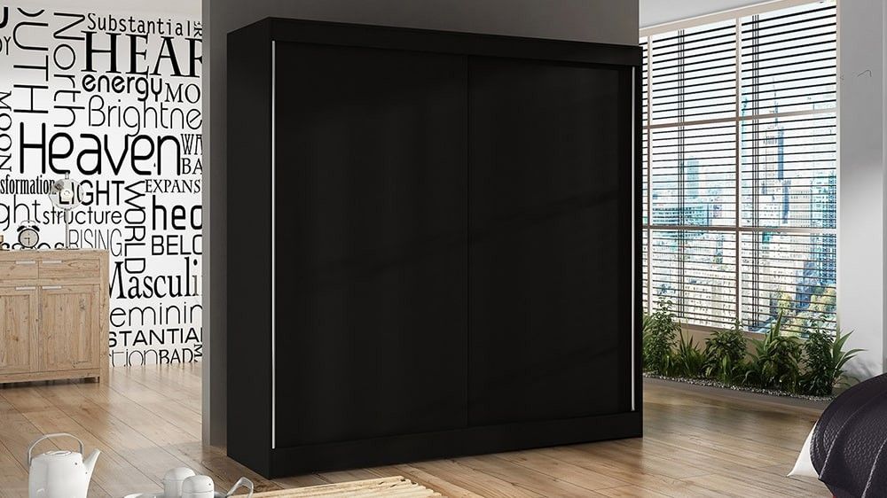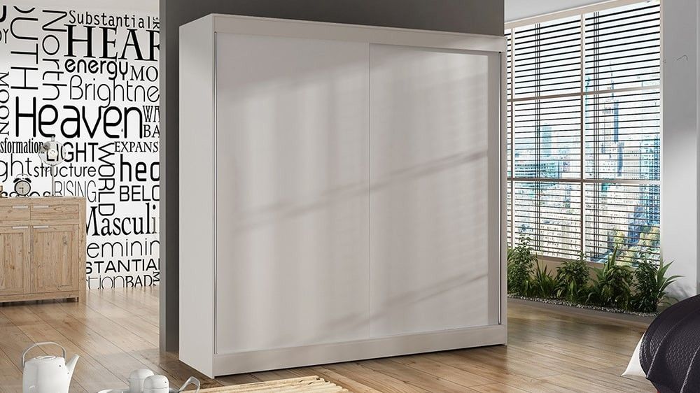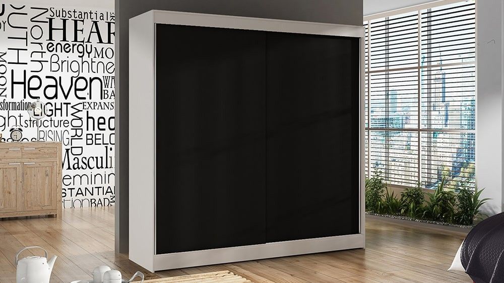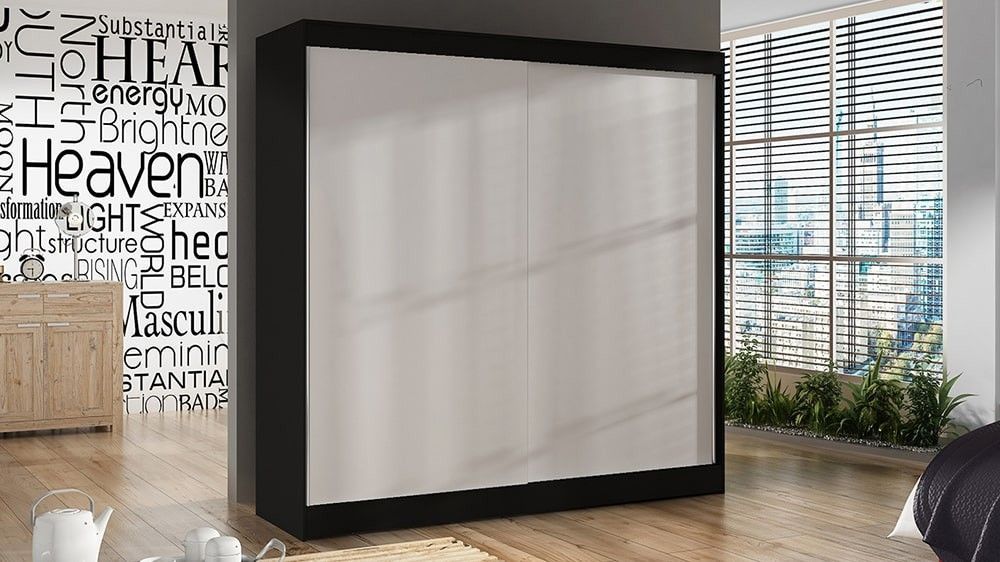 Sofnet Kleiderschrank Basti X 200 - Schwebetürenschrank mit Kleiderstange und Einlegeboden