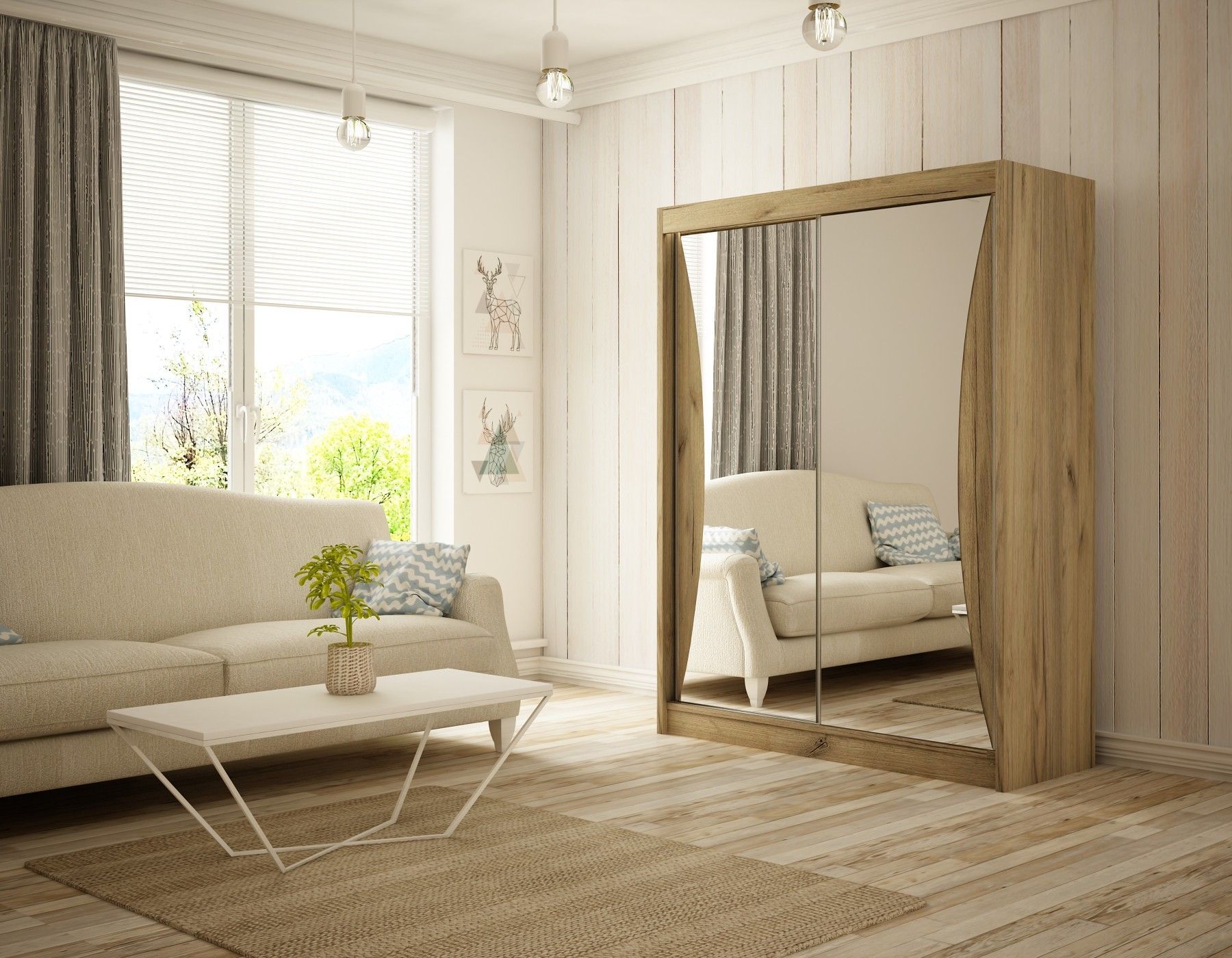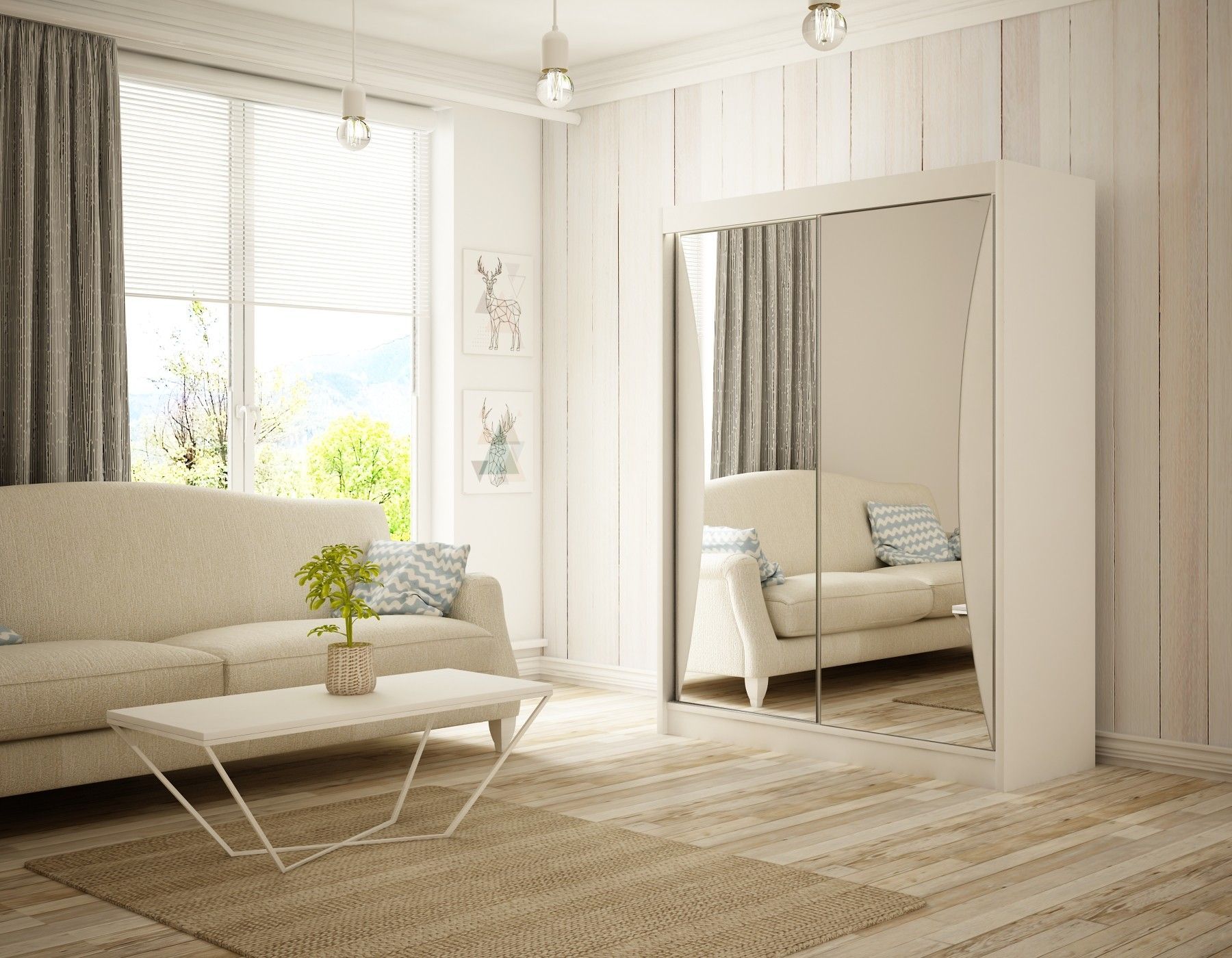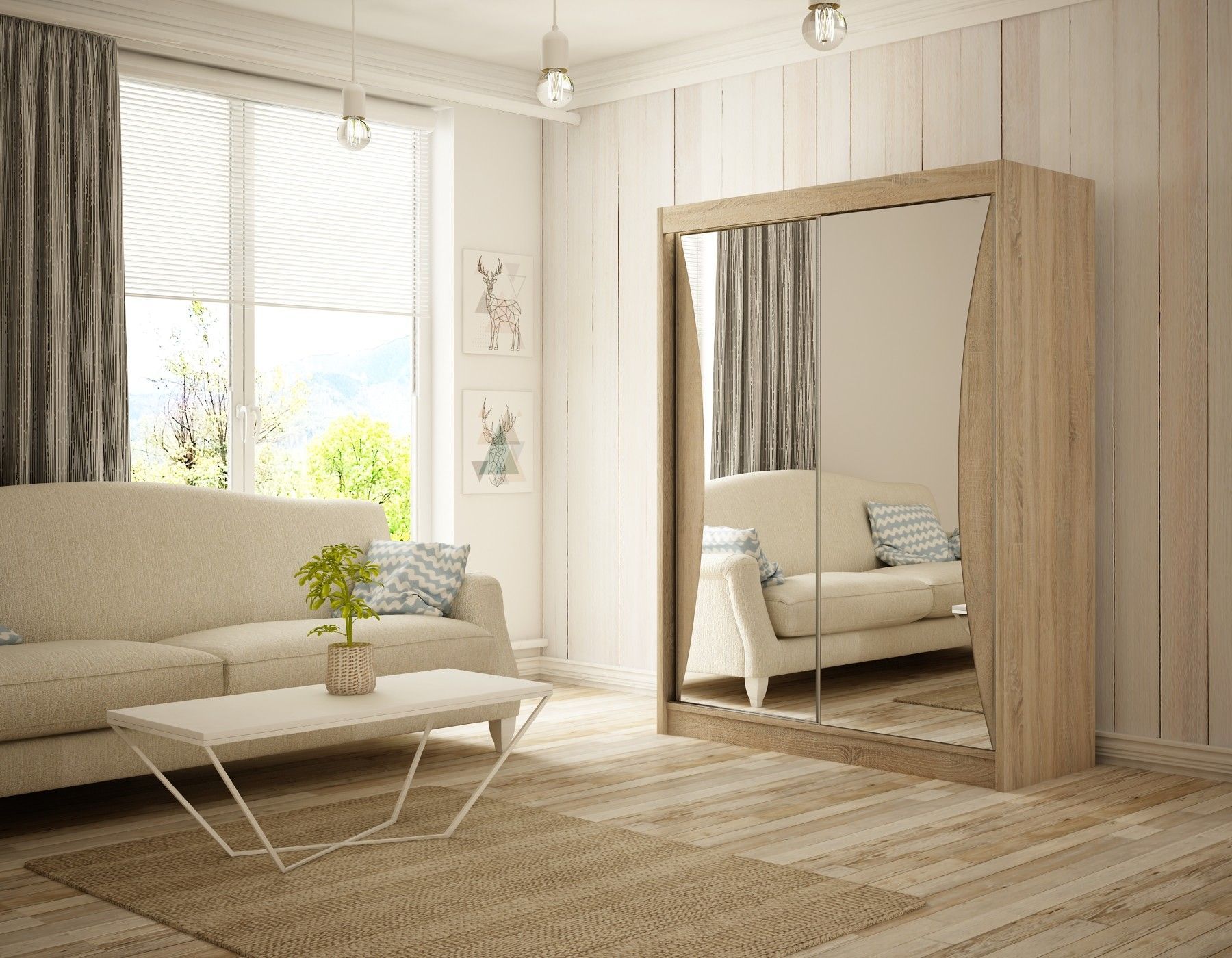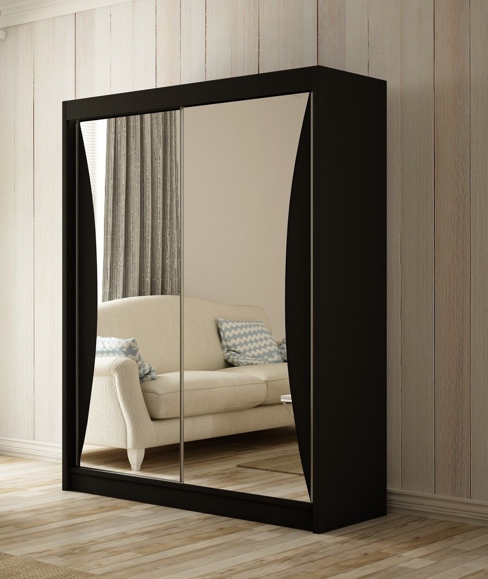 Kleiderschrank Cleo inklusive 2 Schiebetüren mit Spiegel Kleiderstange Garderobe