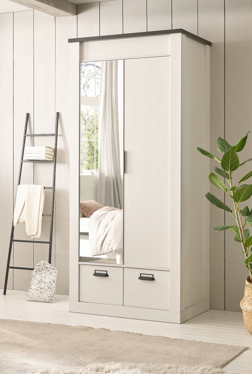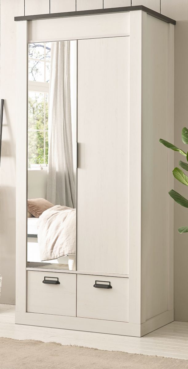 Kleiderschrank Drehtürenschrank Schrank mit Spiegel weiß Landhaus Soft-Close Stove