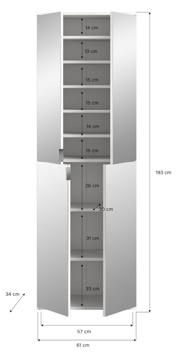 Kleiderschrank Eiche Mehrzweckschrank Spiegeltüren Schuhschrank Line-Up 244 x 193 cm