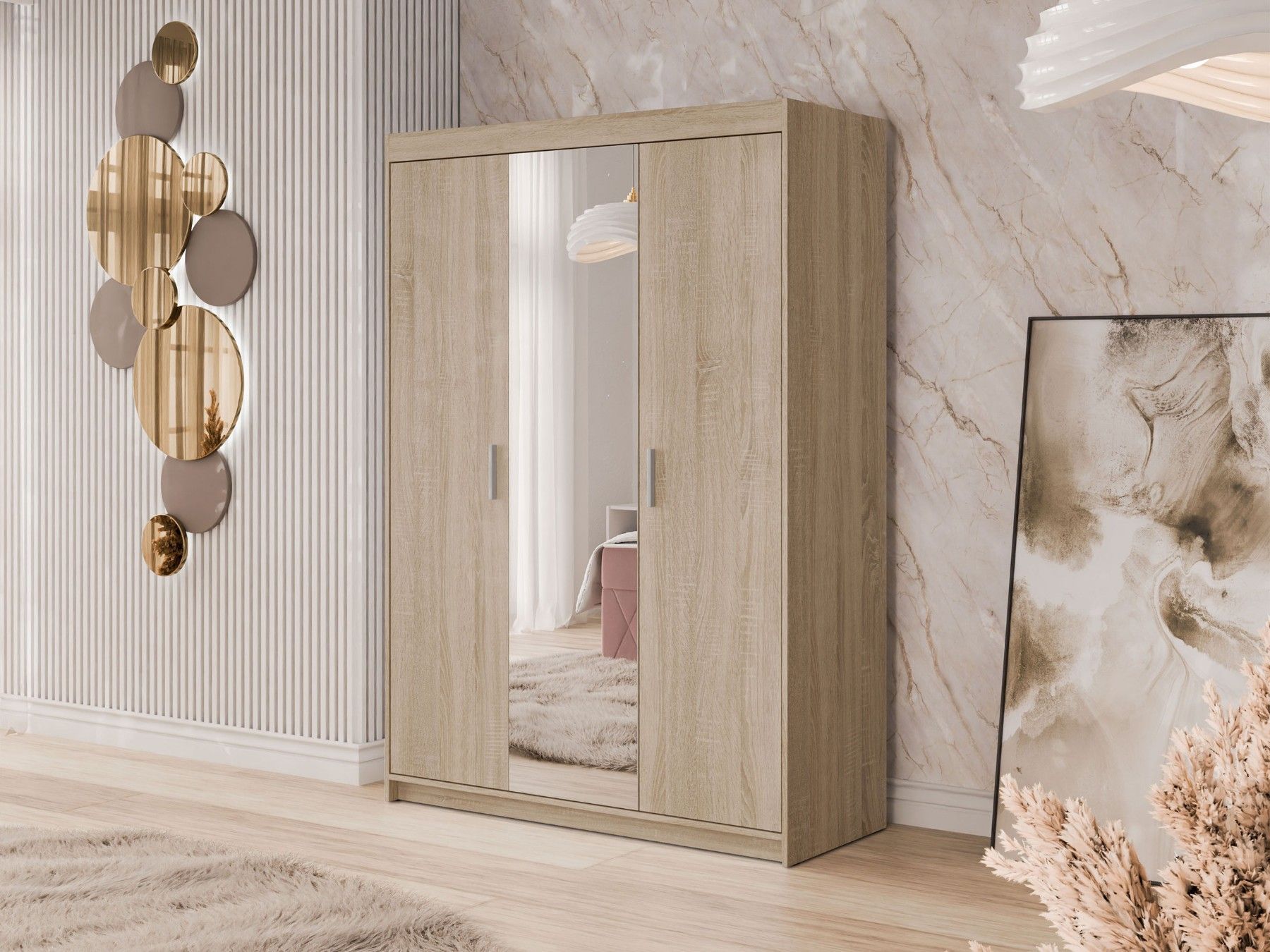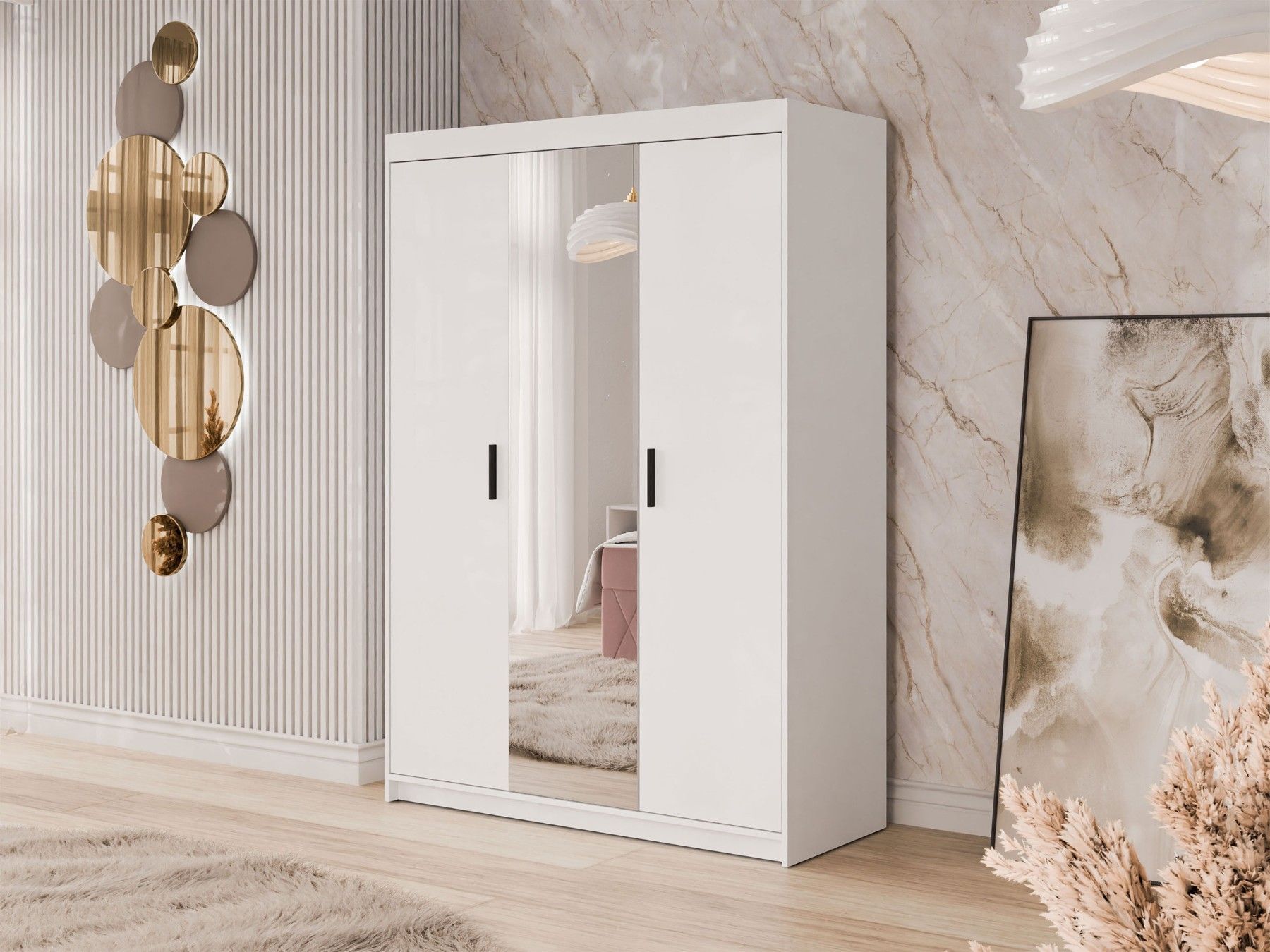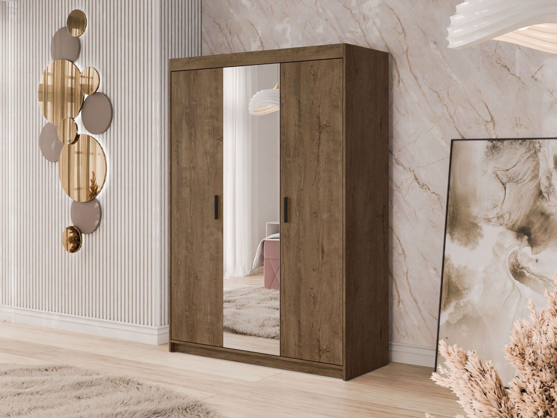 Kleiderschrank Elena 3D mit Spiegel Drehtürenschrank Garderobenschrank