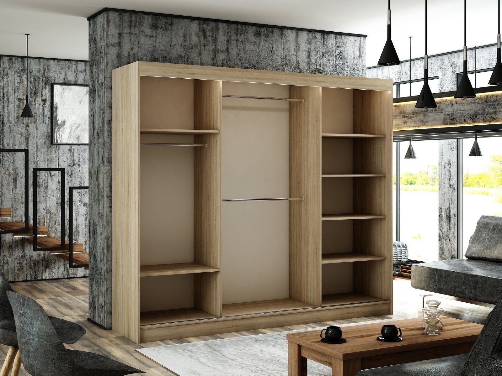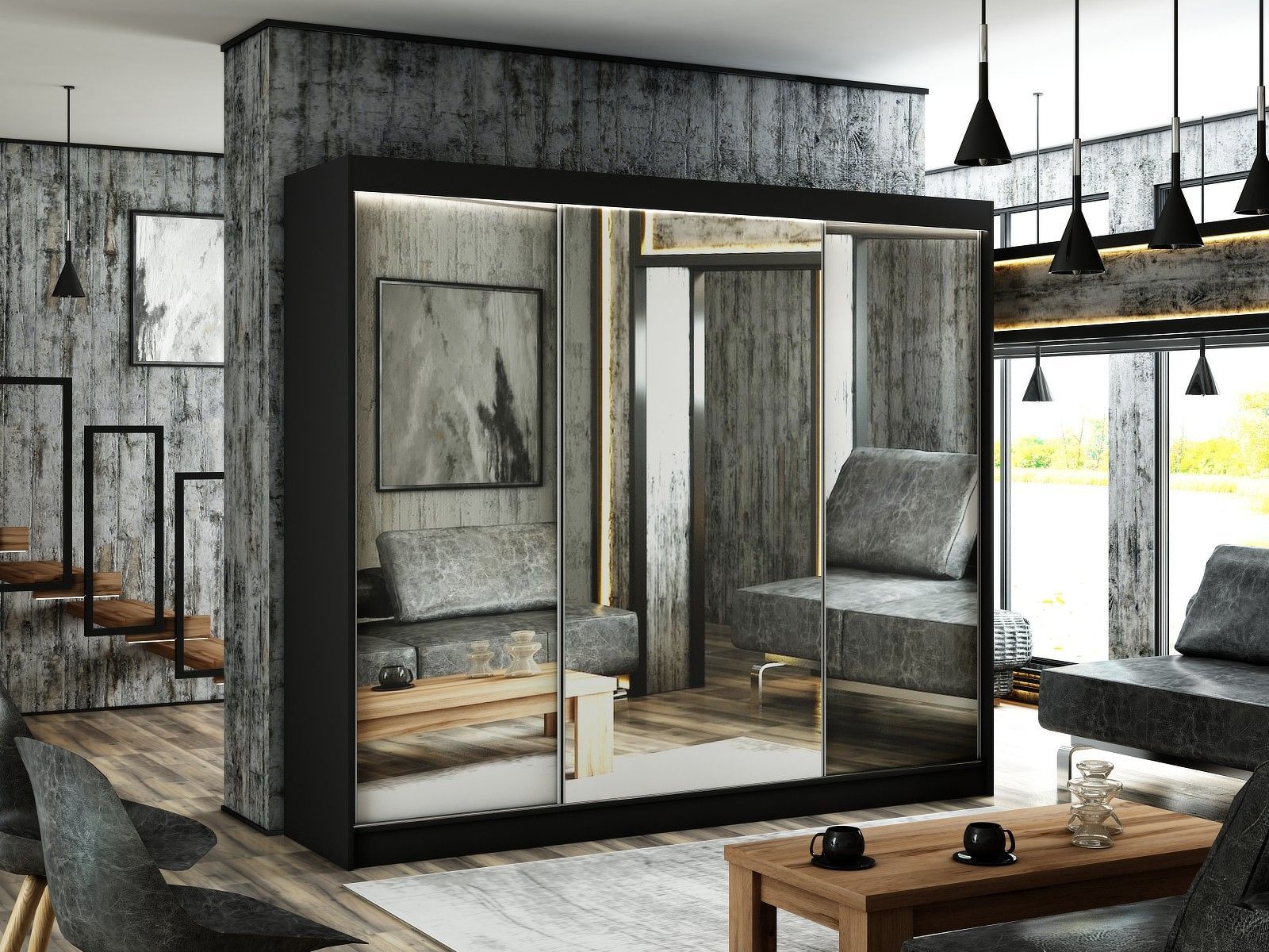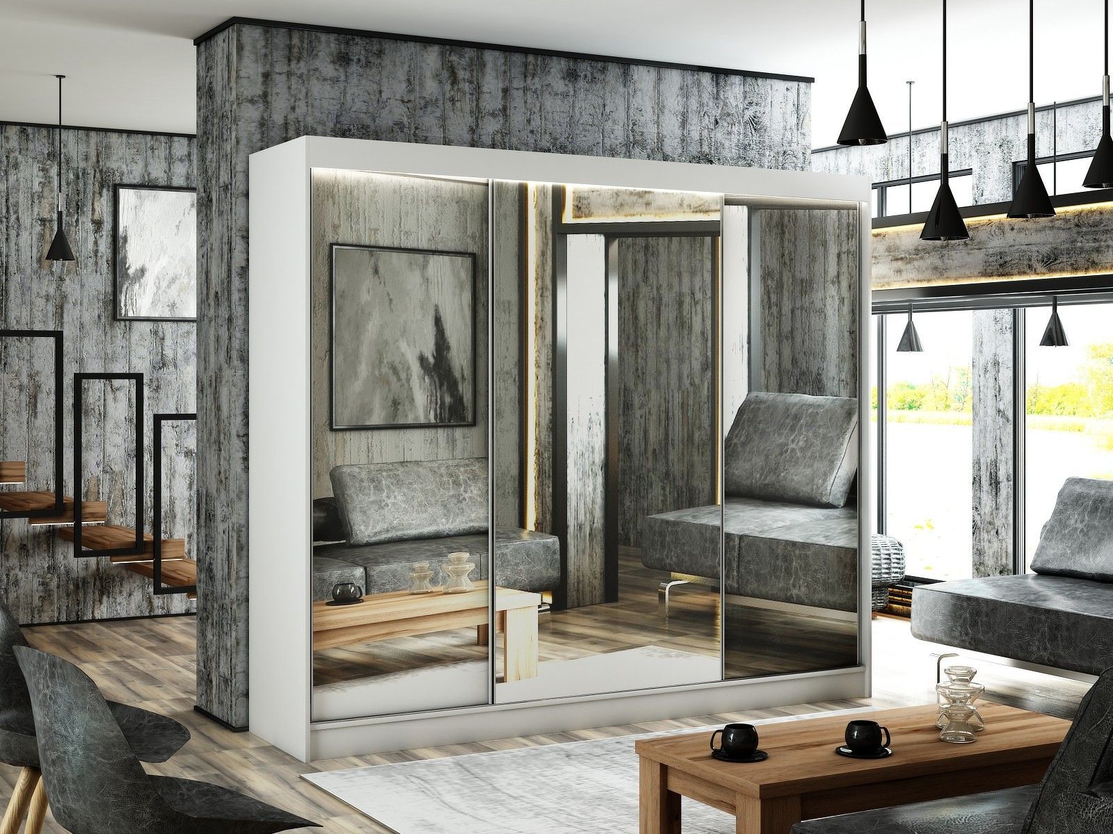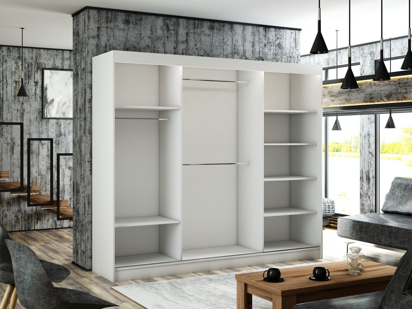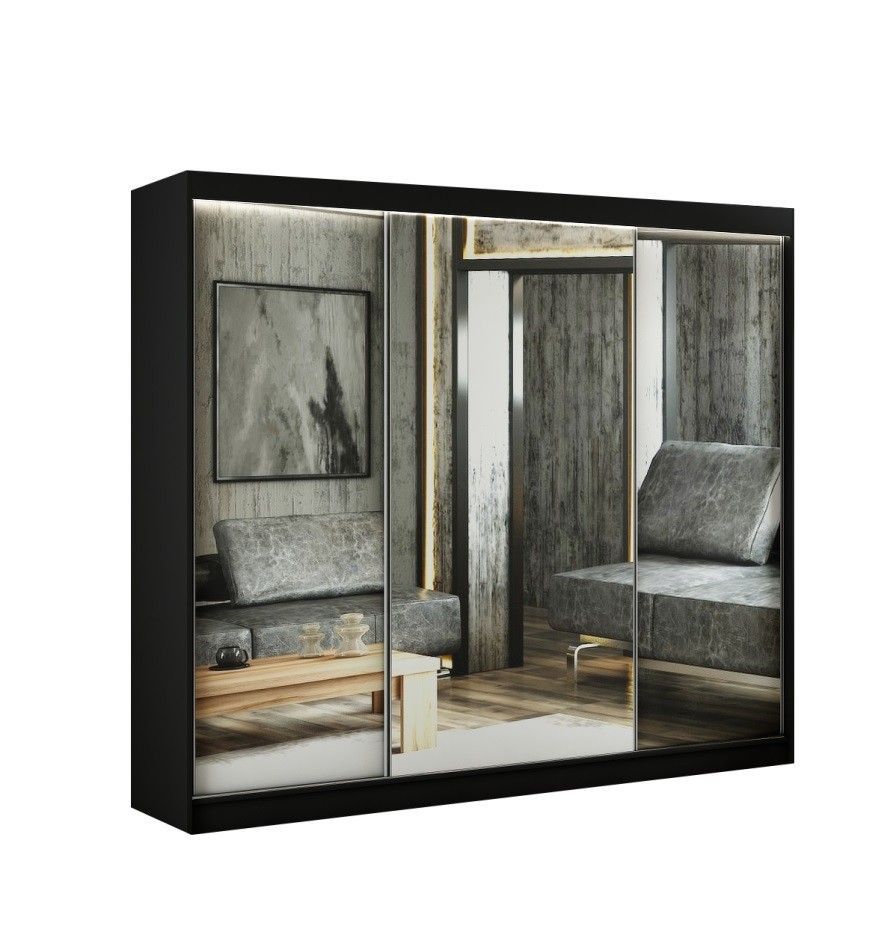 Kleiderschrank Elsa 250 cm inklusive 3 Schiebetüren mit Spiegel Kleiderstange