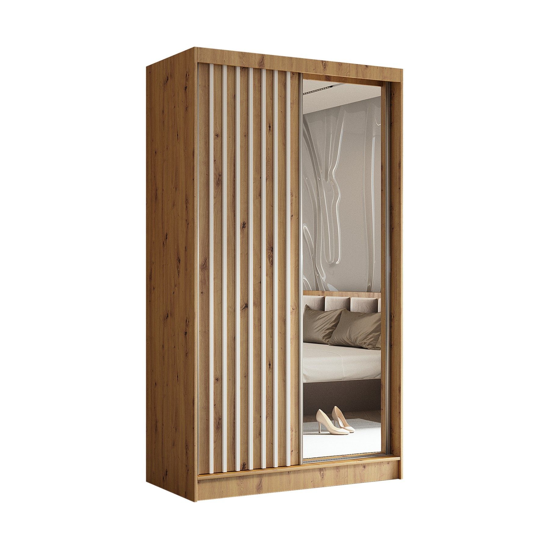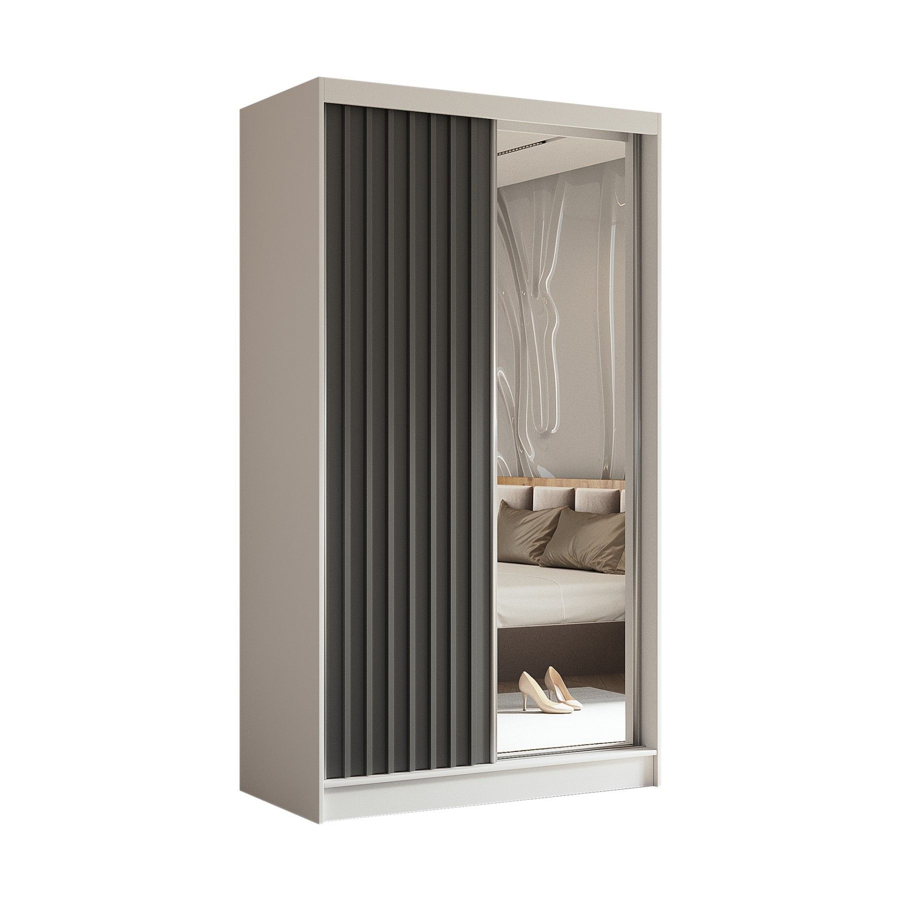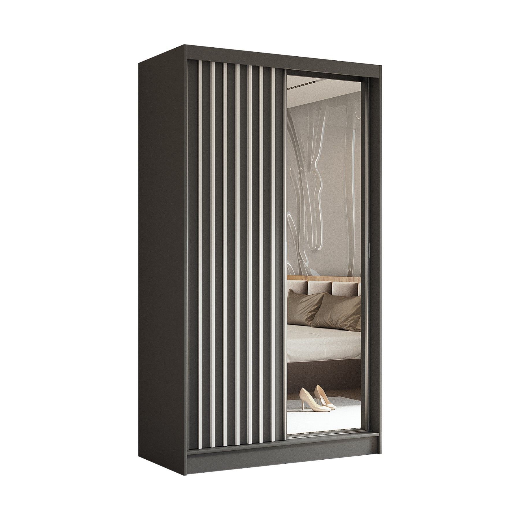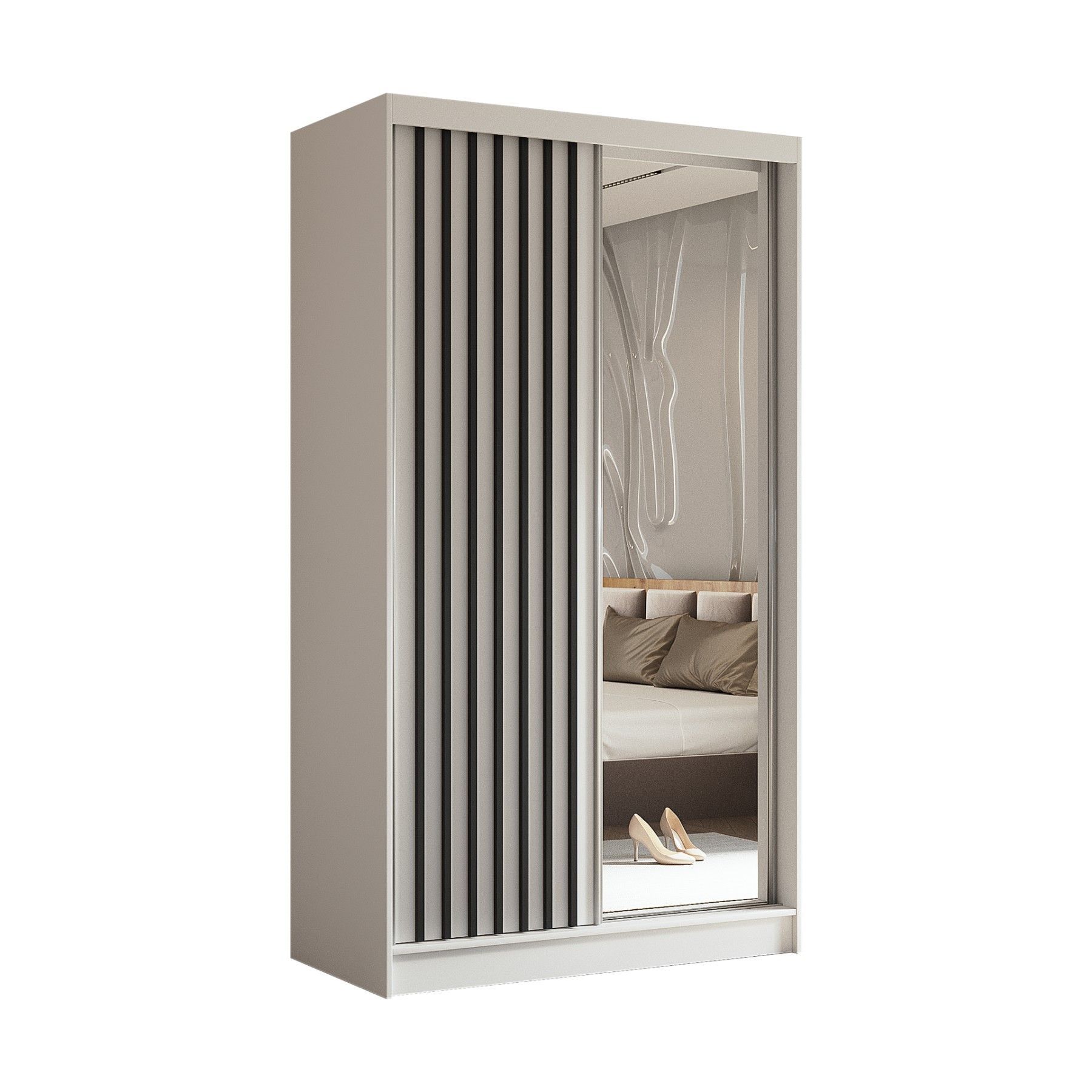 Kleiderschrank Erika 120 cm mit Lamellen mit oder ohne Spiegel, Schiebetüren