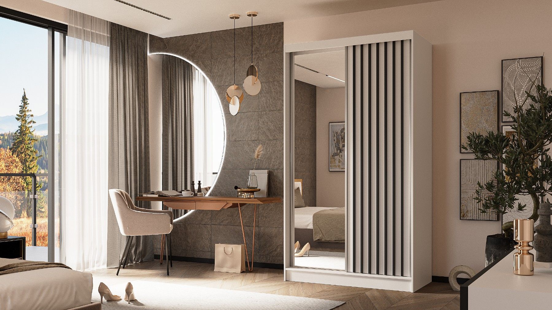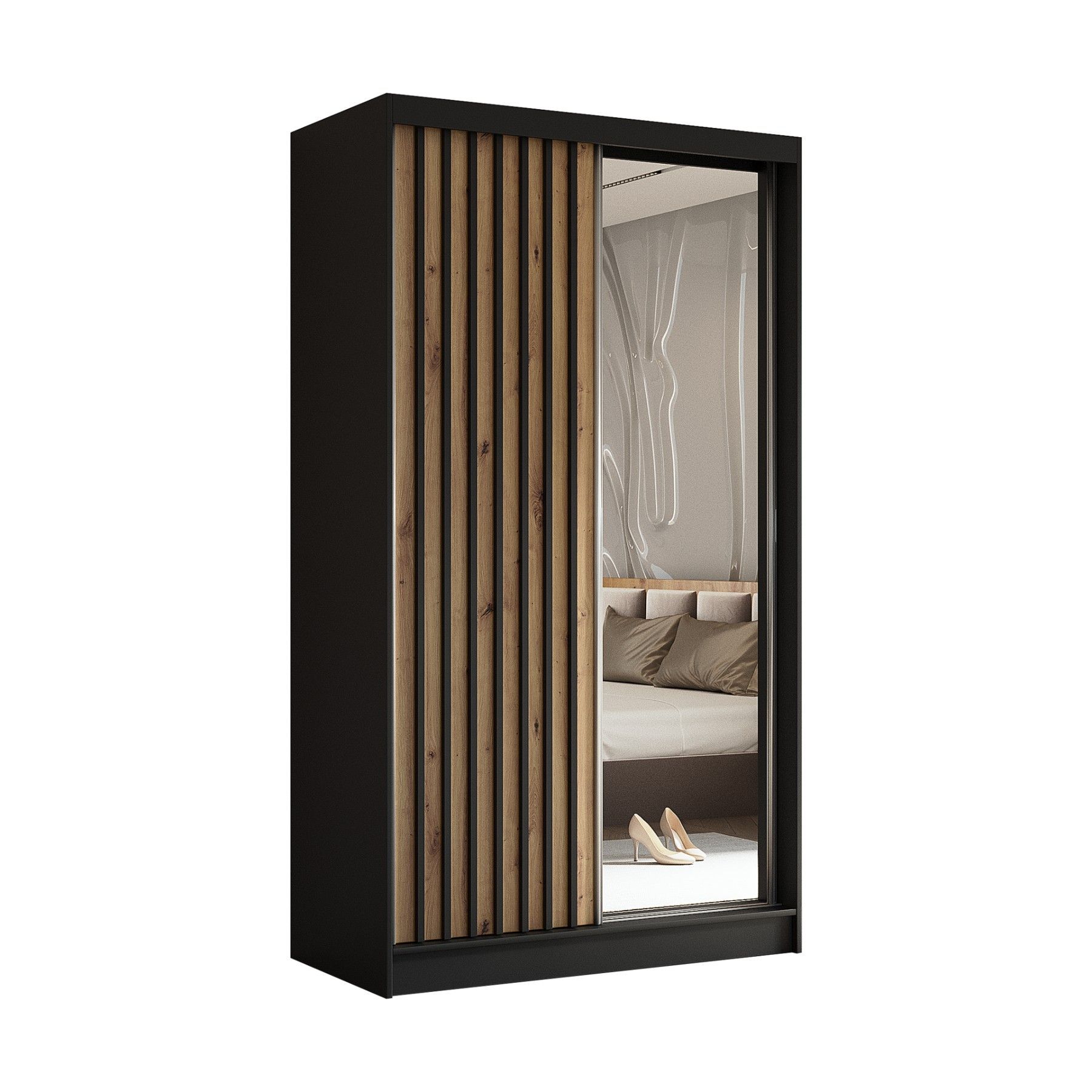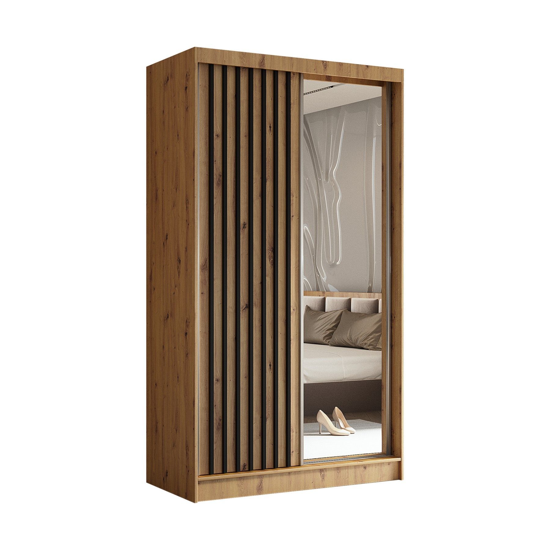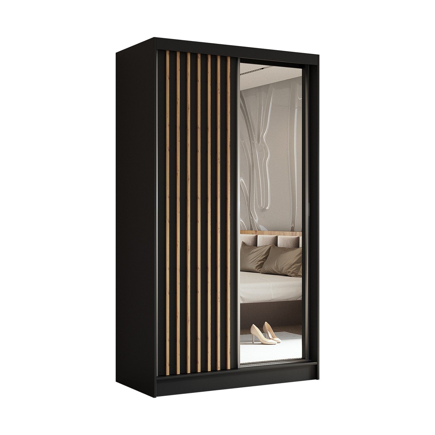 Kleiderschrank Erika 120 cm mit Lamellen mit oder ohne Spiegel, Schiebetüren