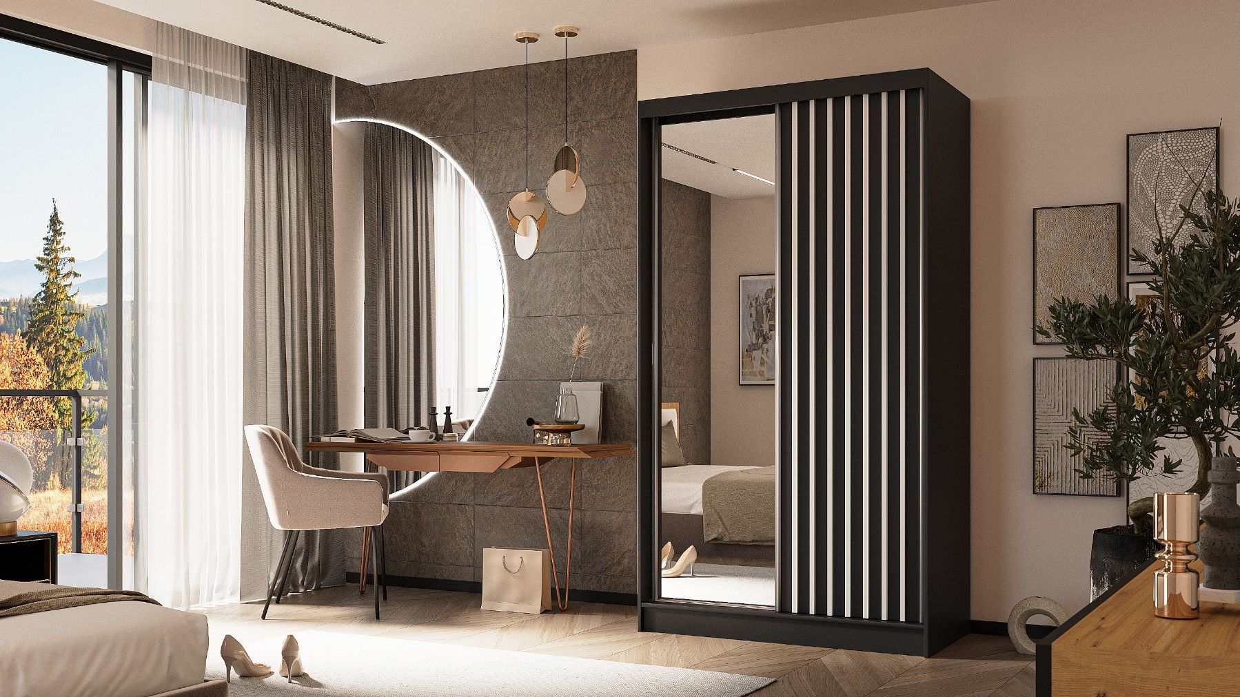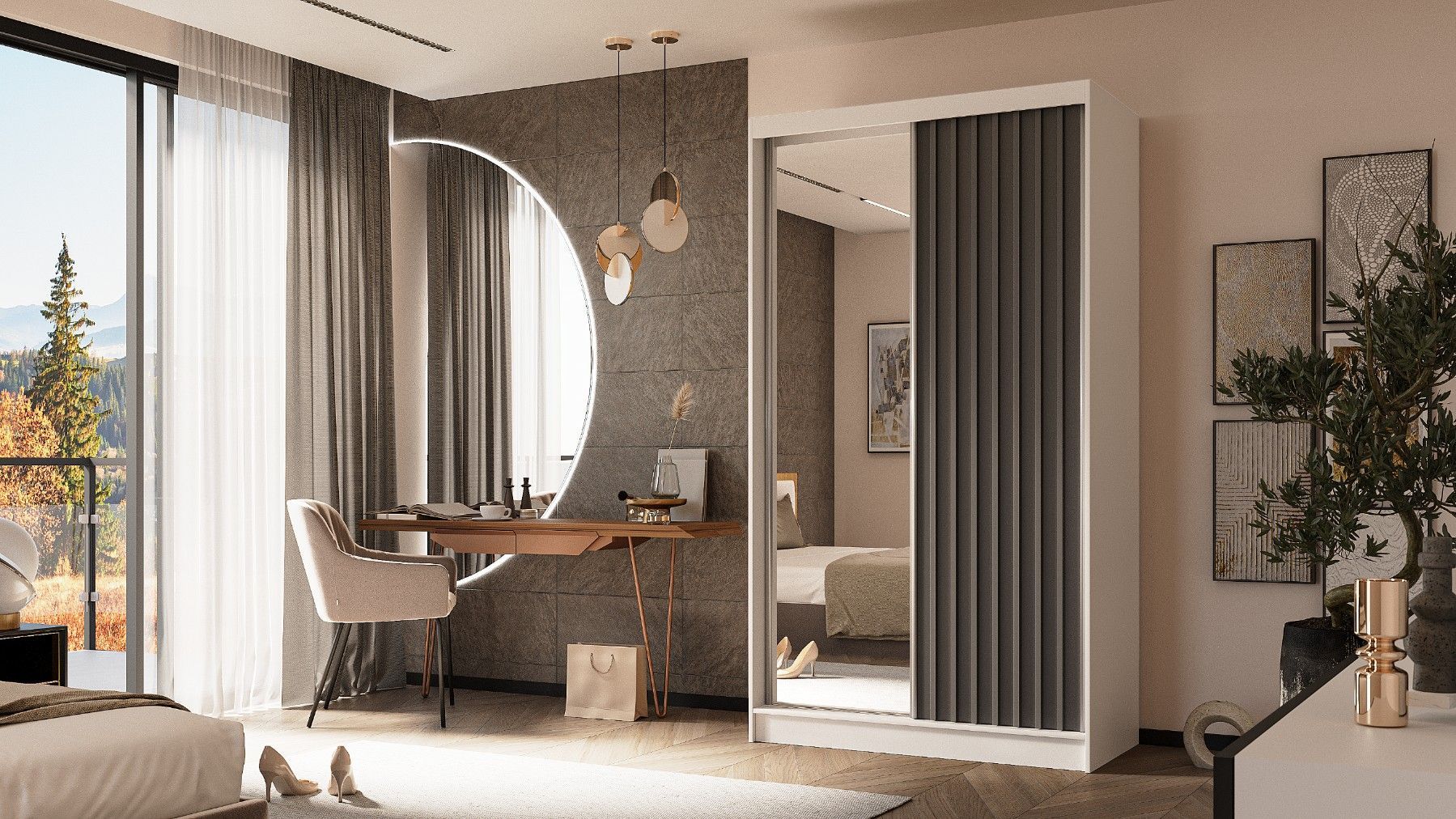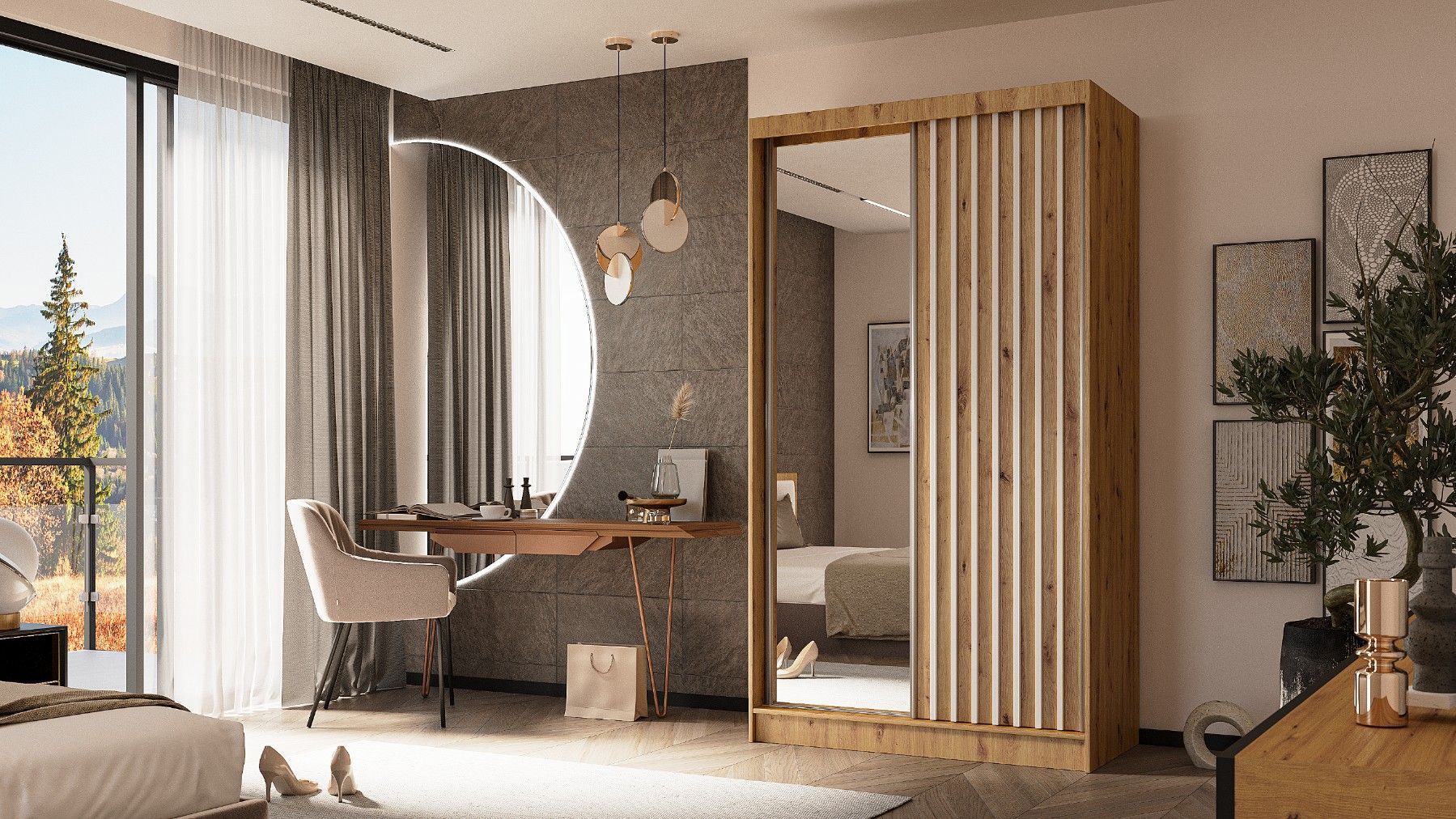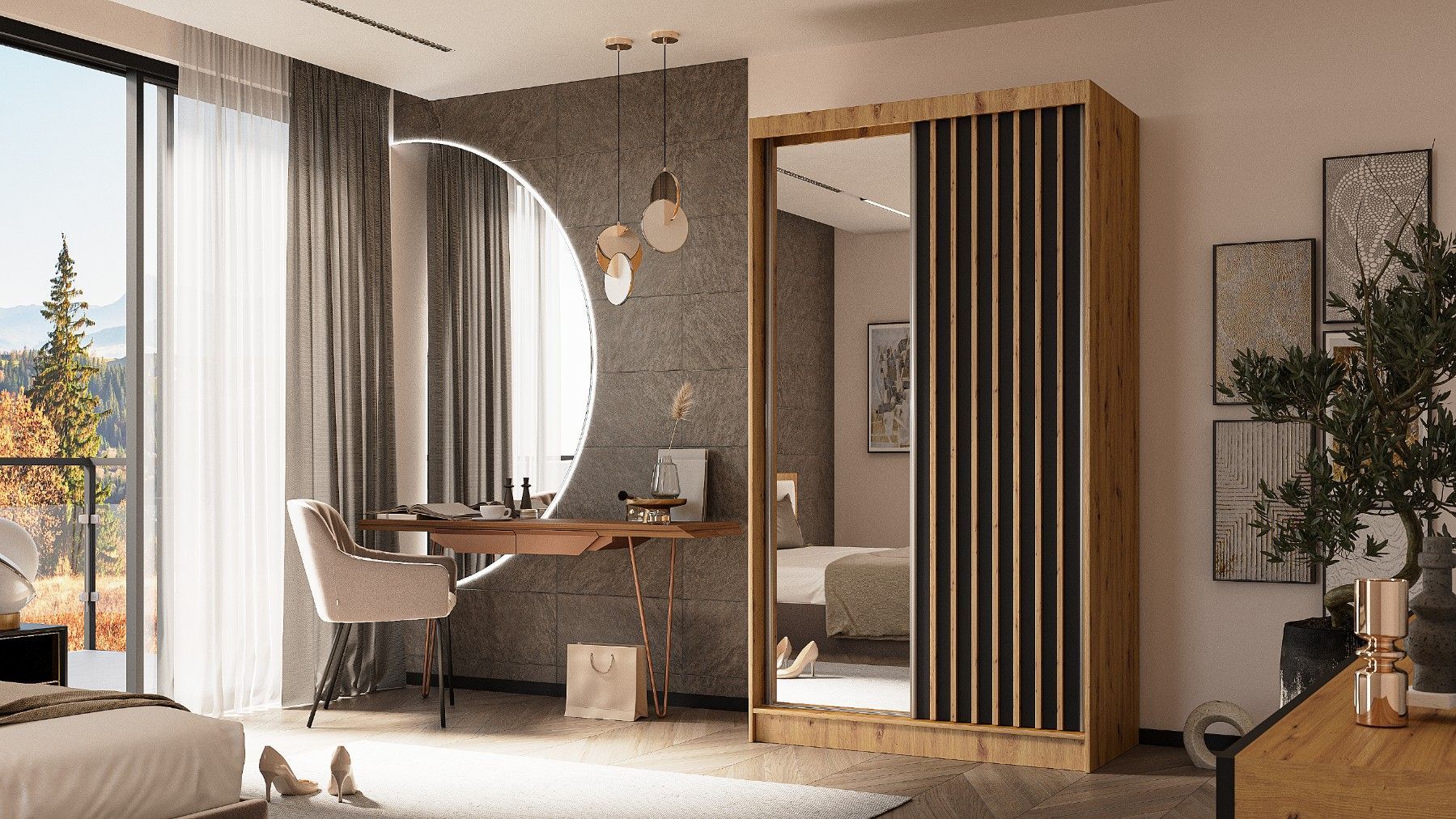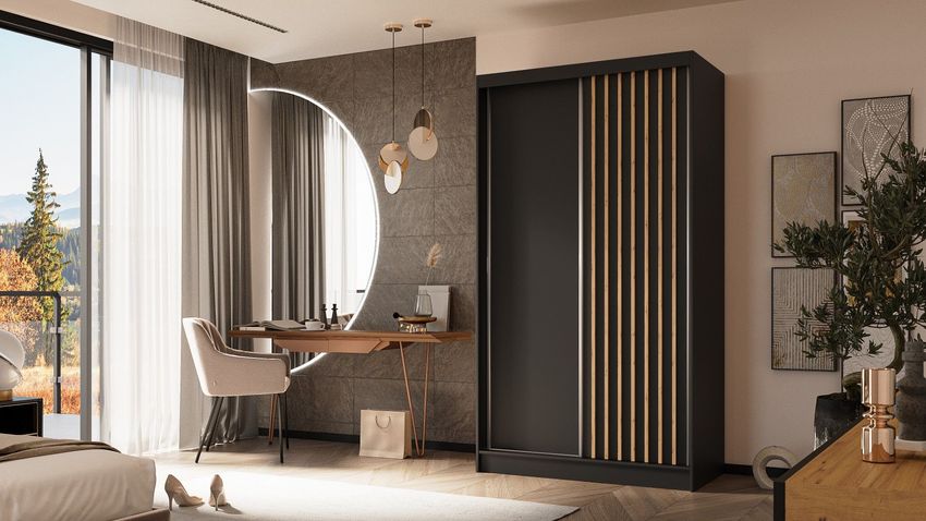 Kleiderschrank Erika 120 cm mit Lamellen mit oder ohne Spiegel, Schiebetüren
