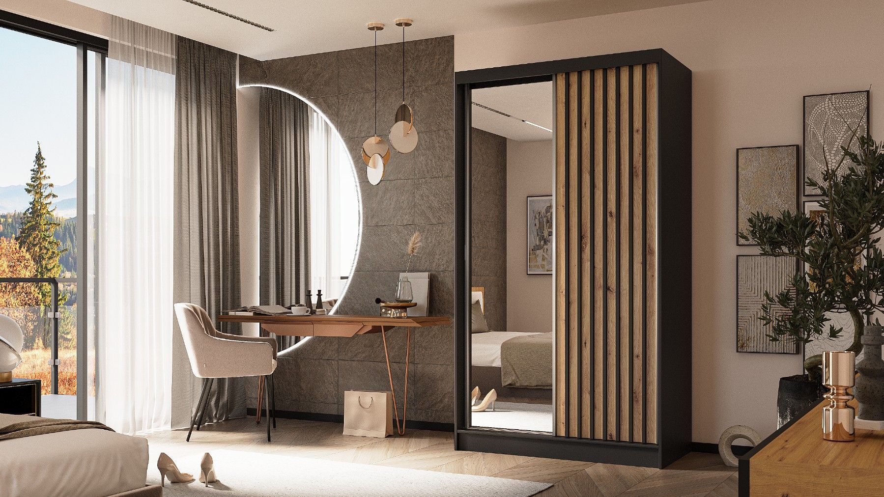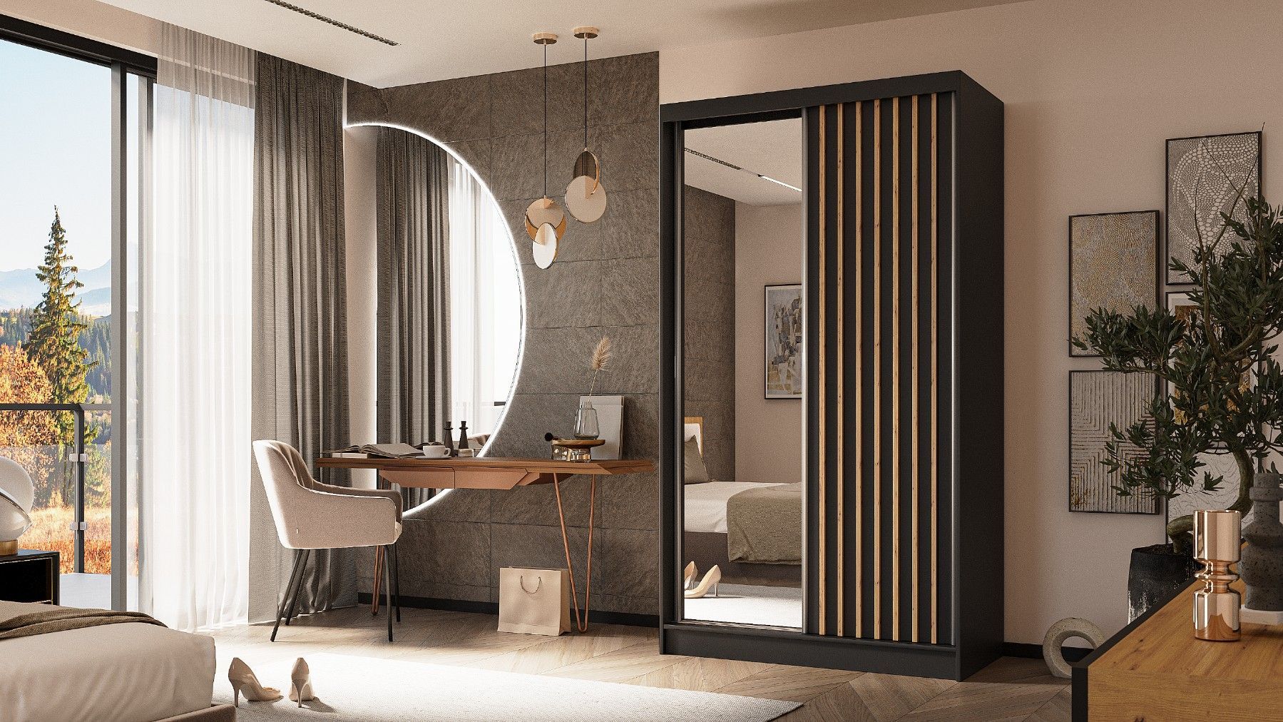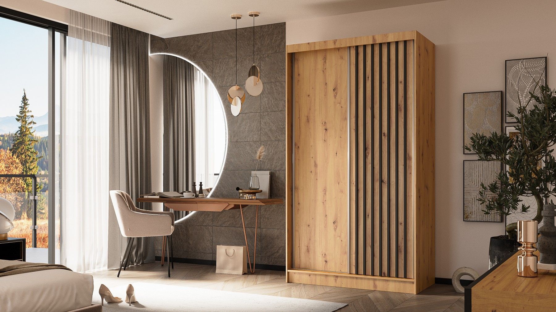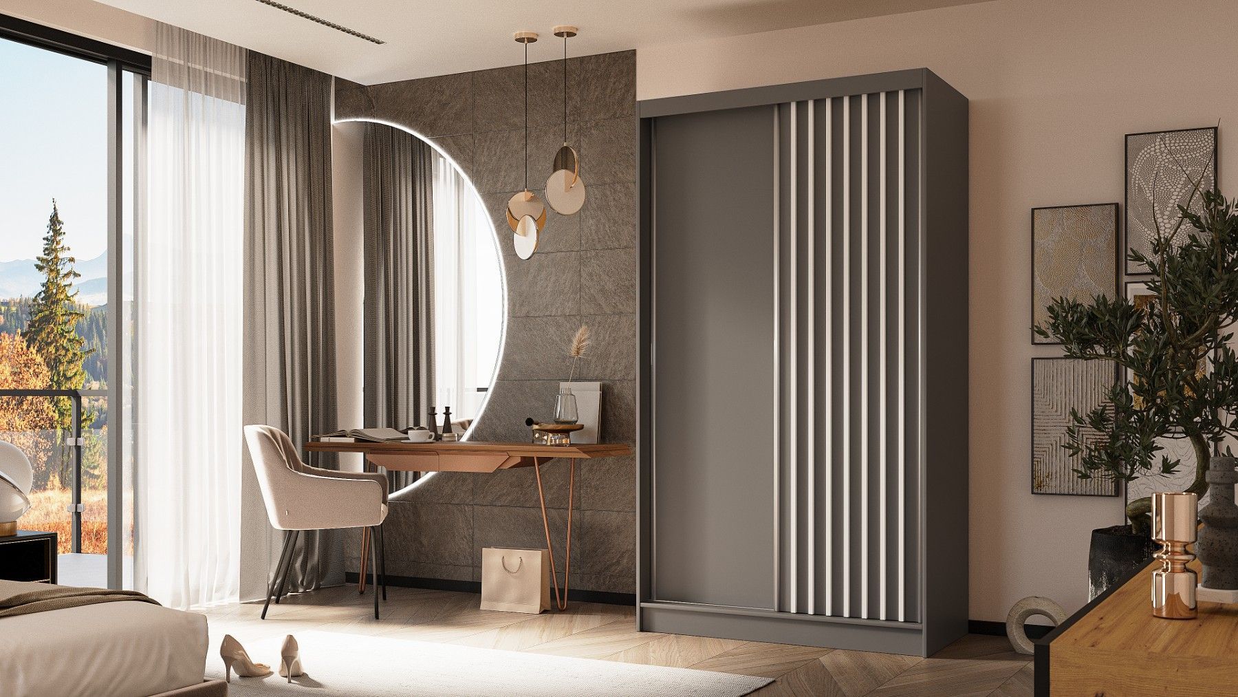 Kleiderschrank Erika 120 cm mit Lamellen mit oder ohne Spiegel, Schiebetüren