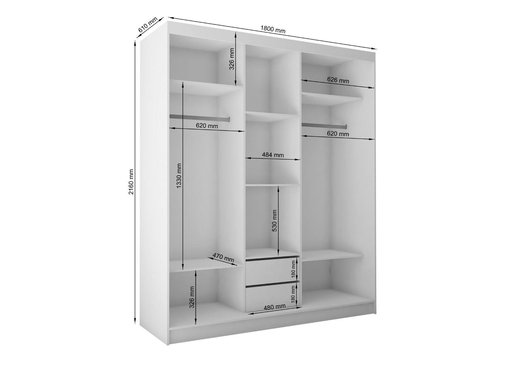 Kleiderschrank Erika 180 cm mit oder ohne Spiegel Schiebetüren