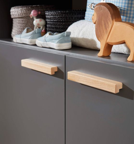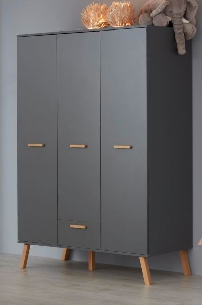 Trendteam Kleiderschrank grau / Buche 3 türig Kinder Baby Zimmer Schrank Möbel Mats 130 cm