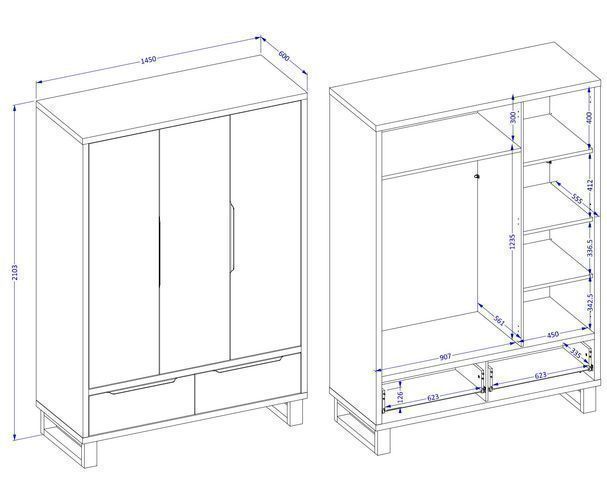 Kleiderschrank HALLE 19 Schrank 145x210x60 cm Wotan Eiche