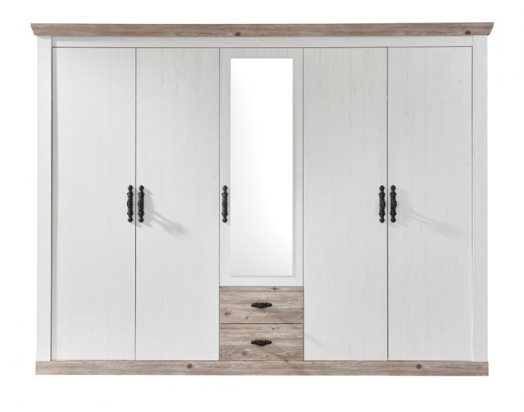 Kleiderschrank in weiß Pinie Drehtüren Landhaus Schrank 5 Türen Spiegel Rovola