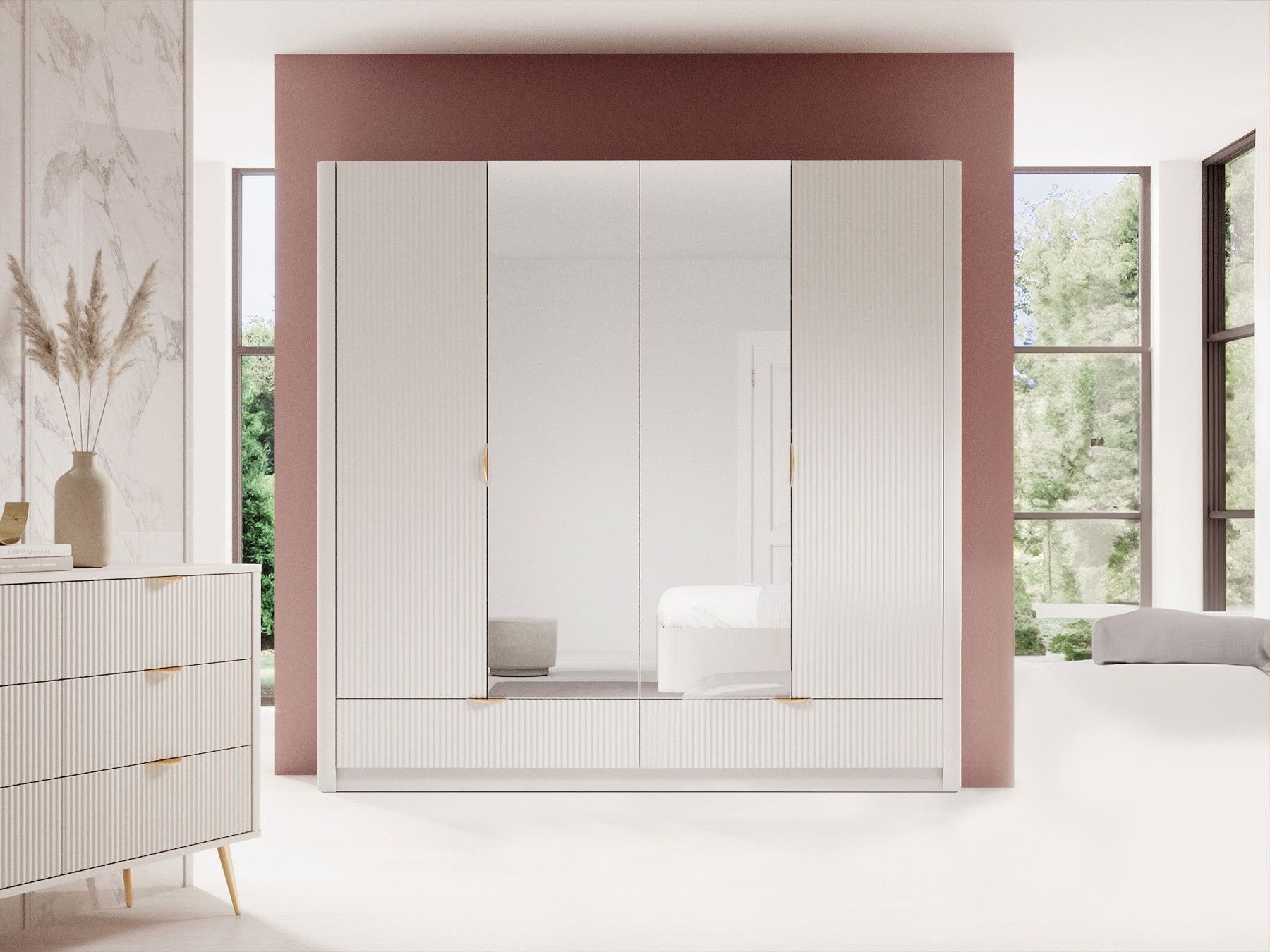 Kleiderschrank Lante mit Spiegel mit Kleiderstange Schubladen Modern Schlafzimmer