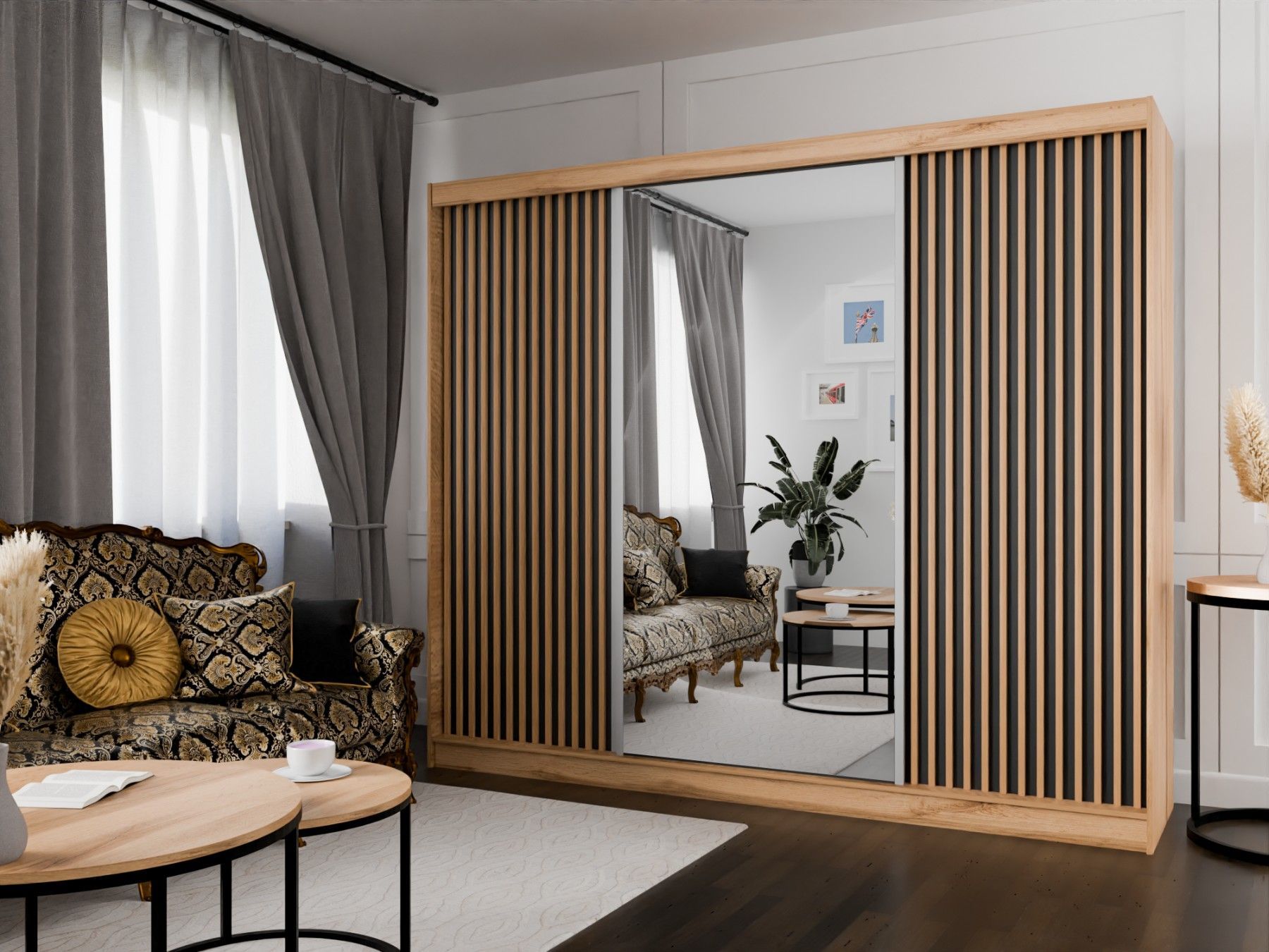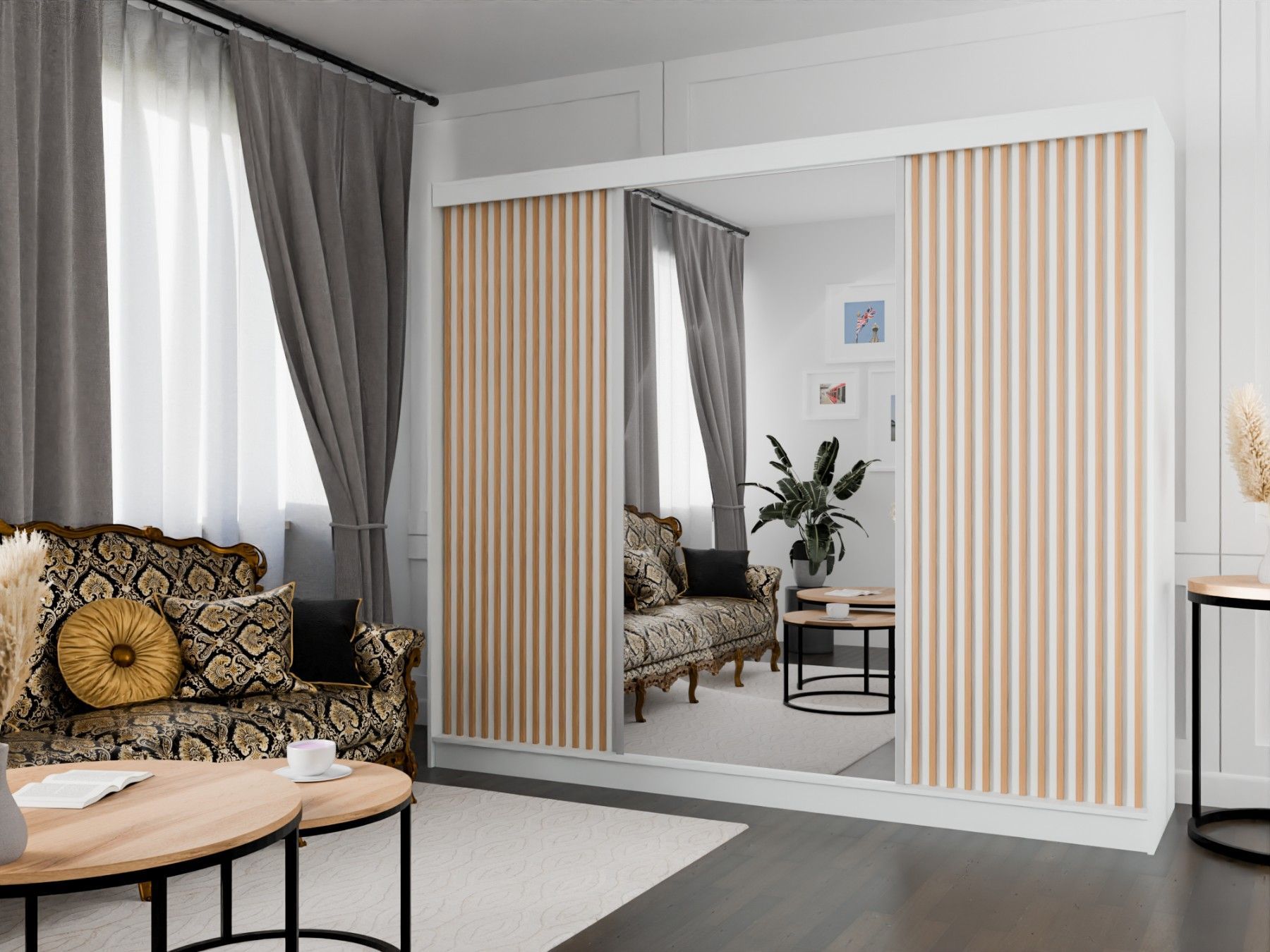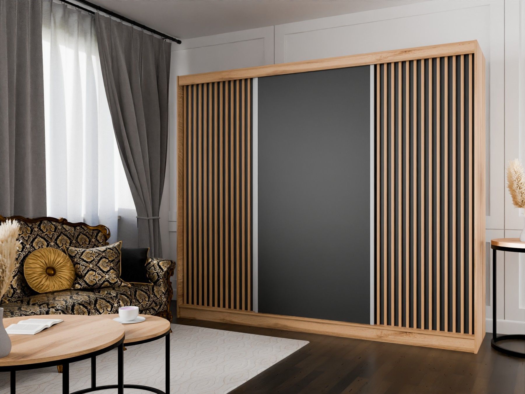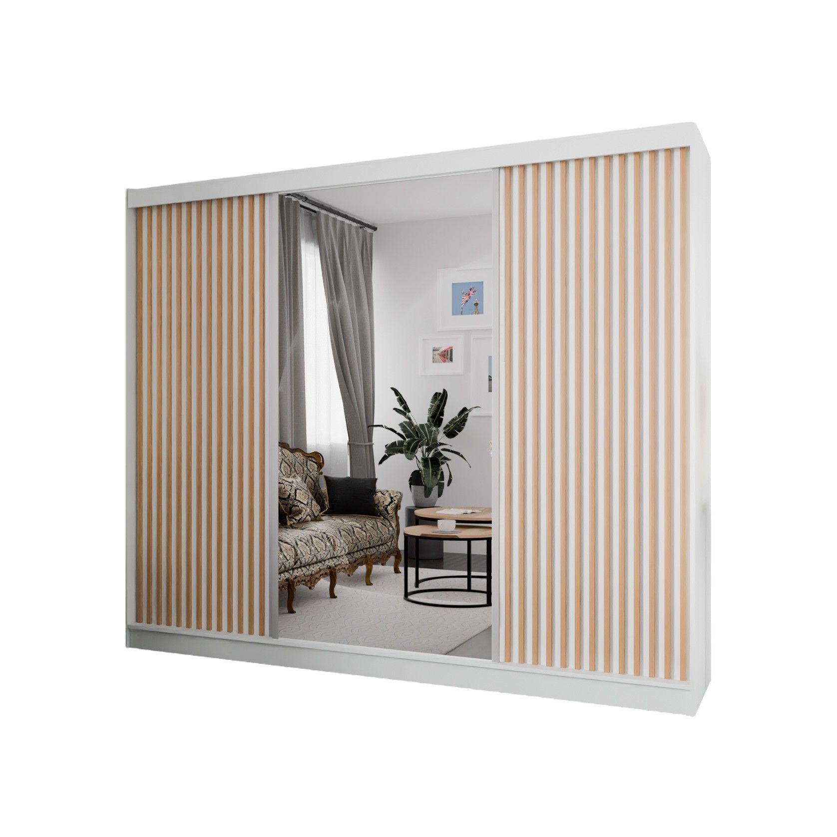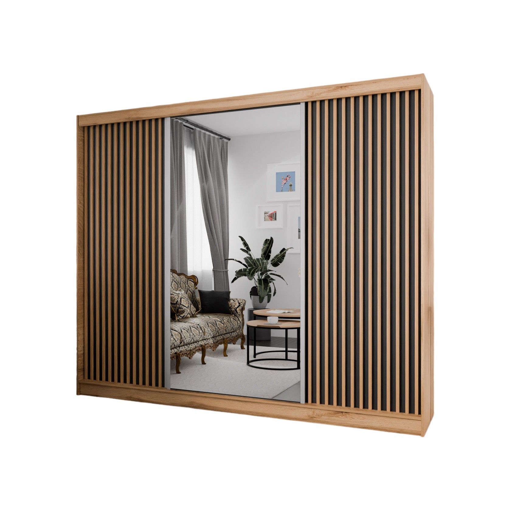 Kleiderschrank Lili mit Lamellen 250 cm inklusive 3 Schiebetüren Schwebetürenschrank
